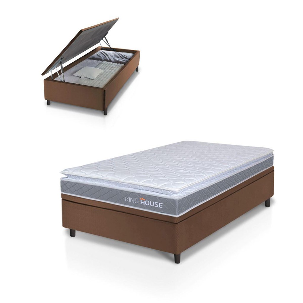 Conjunto Box Baú Marrom Durban Cinza Espuma D28 Solteiro 88x188x64 - King House
