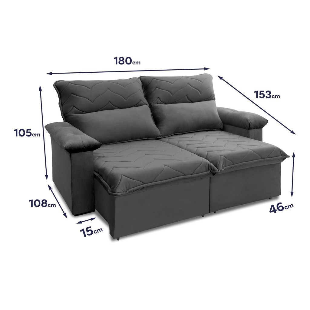 Sofá Retrátil Reclinável Paris 1,80m Suede Velut Cinza Molas Ensacadas - King House