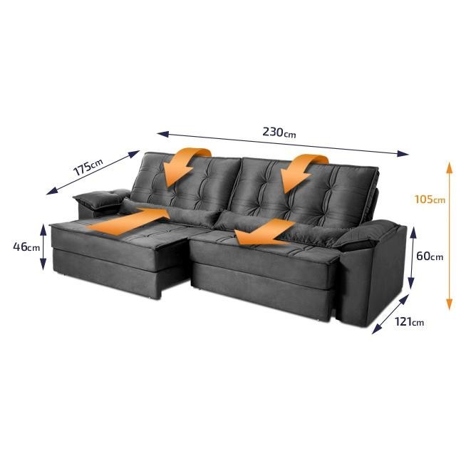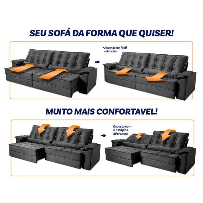 Sofá Retrátil Reclinável 2,30m Ascari Suede Velut Cinza molas Ensacadas - King House