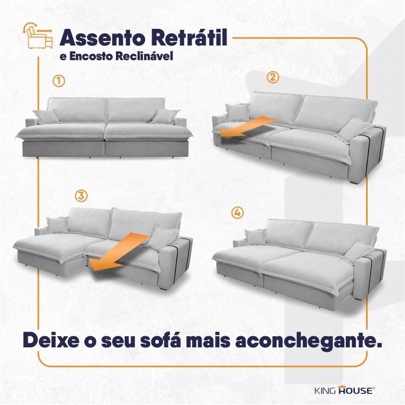 Sofá Retrátil Reclinável Nairobi 2,88m Cinza Bouclê