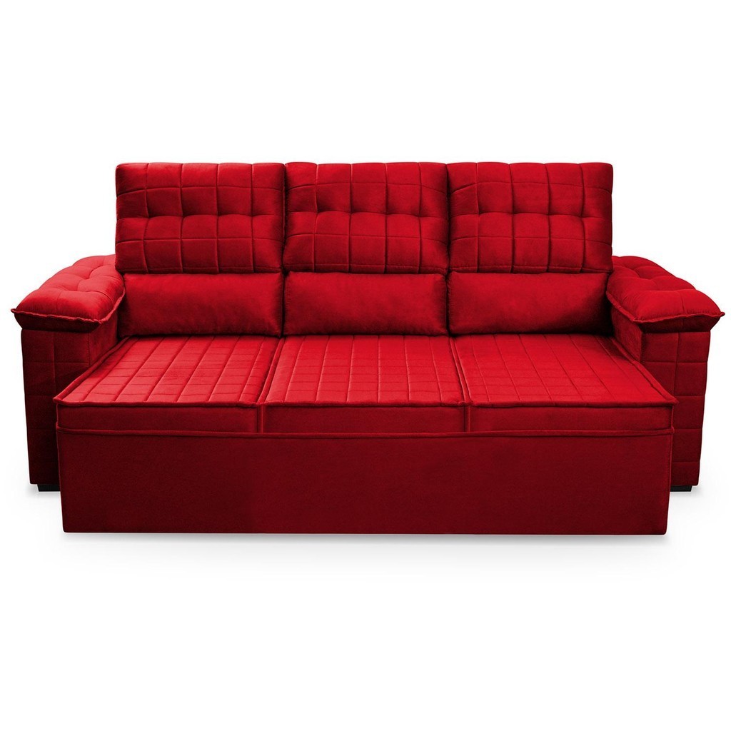 Sofá Retrátil Reclinável 4 lugares 2,30m Quantum Suede Velut Vermelho - King House