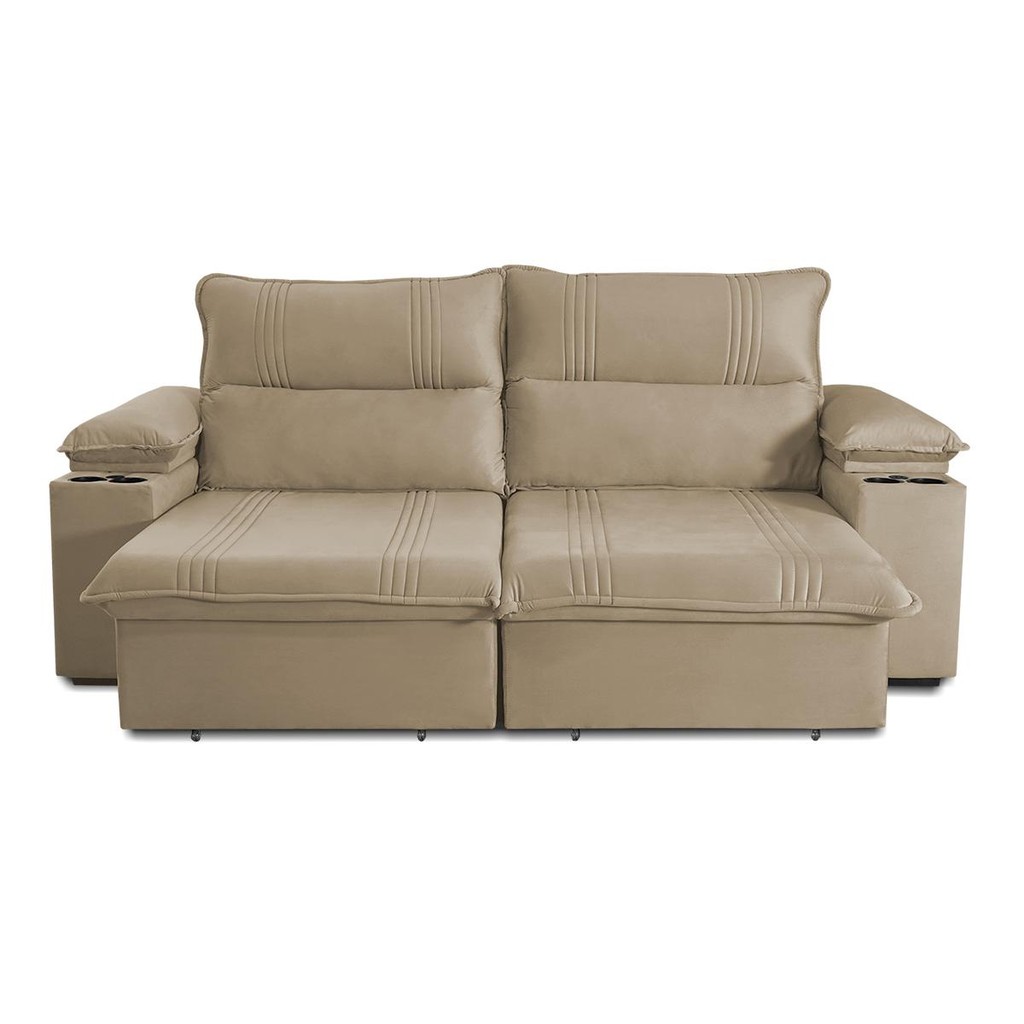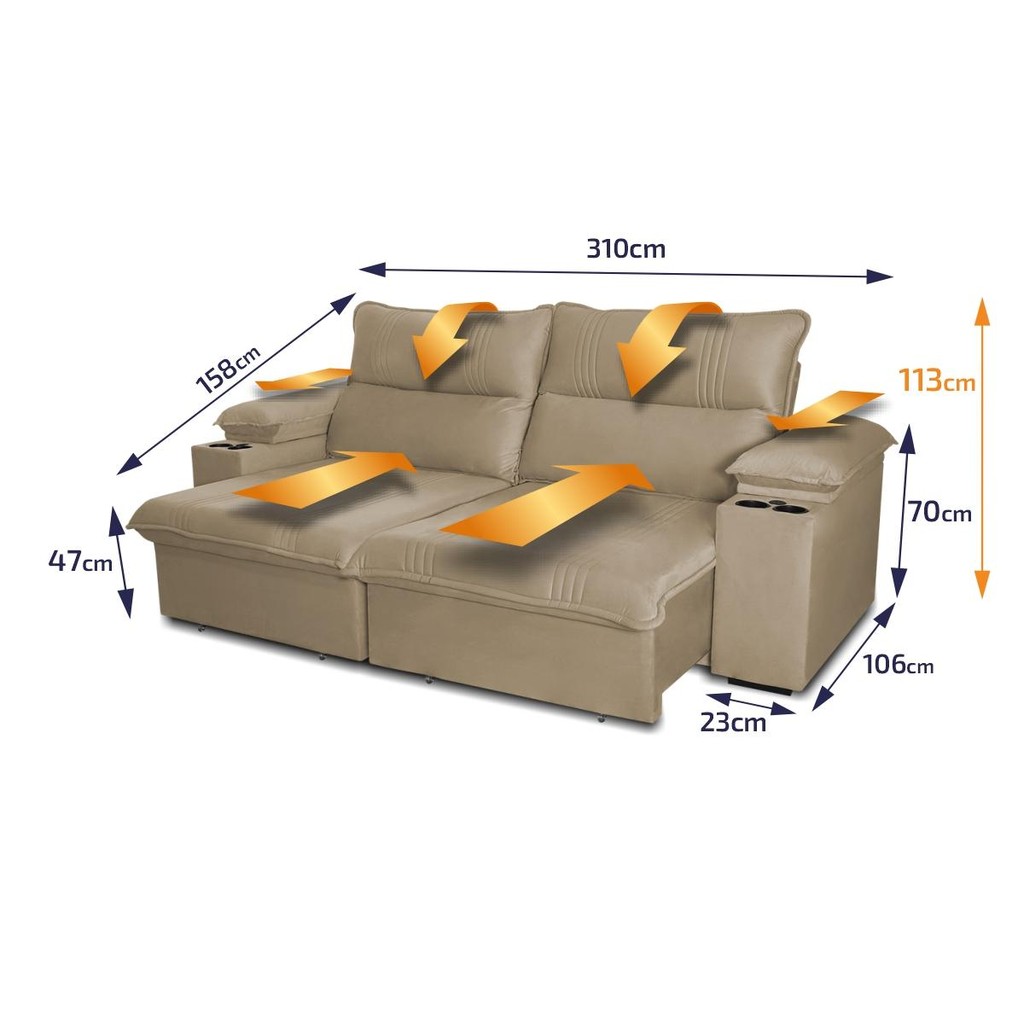 Sofá Retrátil Tesla 3,10m USB e Porta Copo Suede Bege