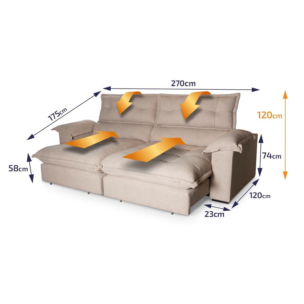Sofá Retrátil Reclinável Aconchego 2,70m Bouclê Bege