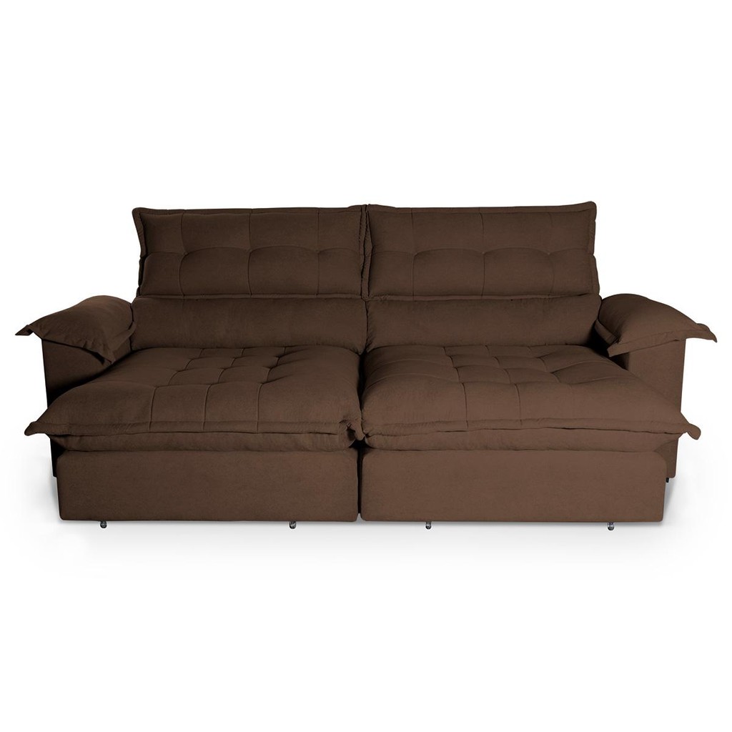 Sofá Retrátil Reclinável Aconchego 2,50m Bouclê Cafe