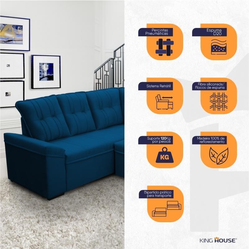 Sofá Canto London Azul Suede Velut - King House