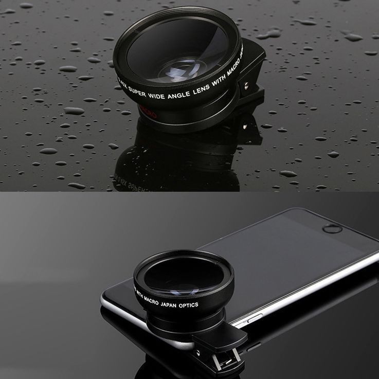 Universal Lente para Telefone com Clipe- 2 em 1 Lente Super Macro e Grande Angular