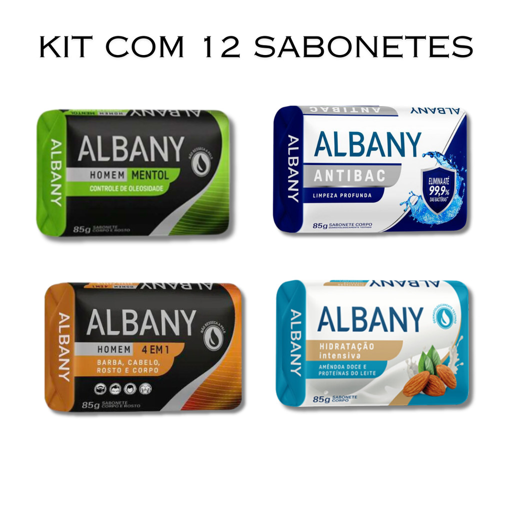 Kit 12 Sabonetes Albany 85gr Antibac - Barba - Mentol