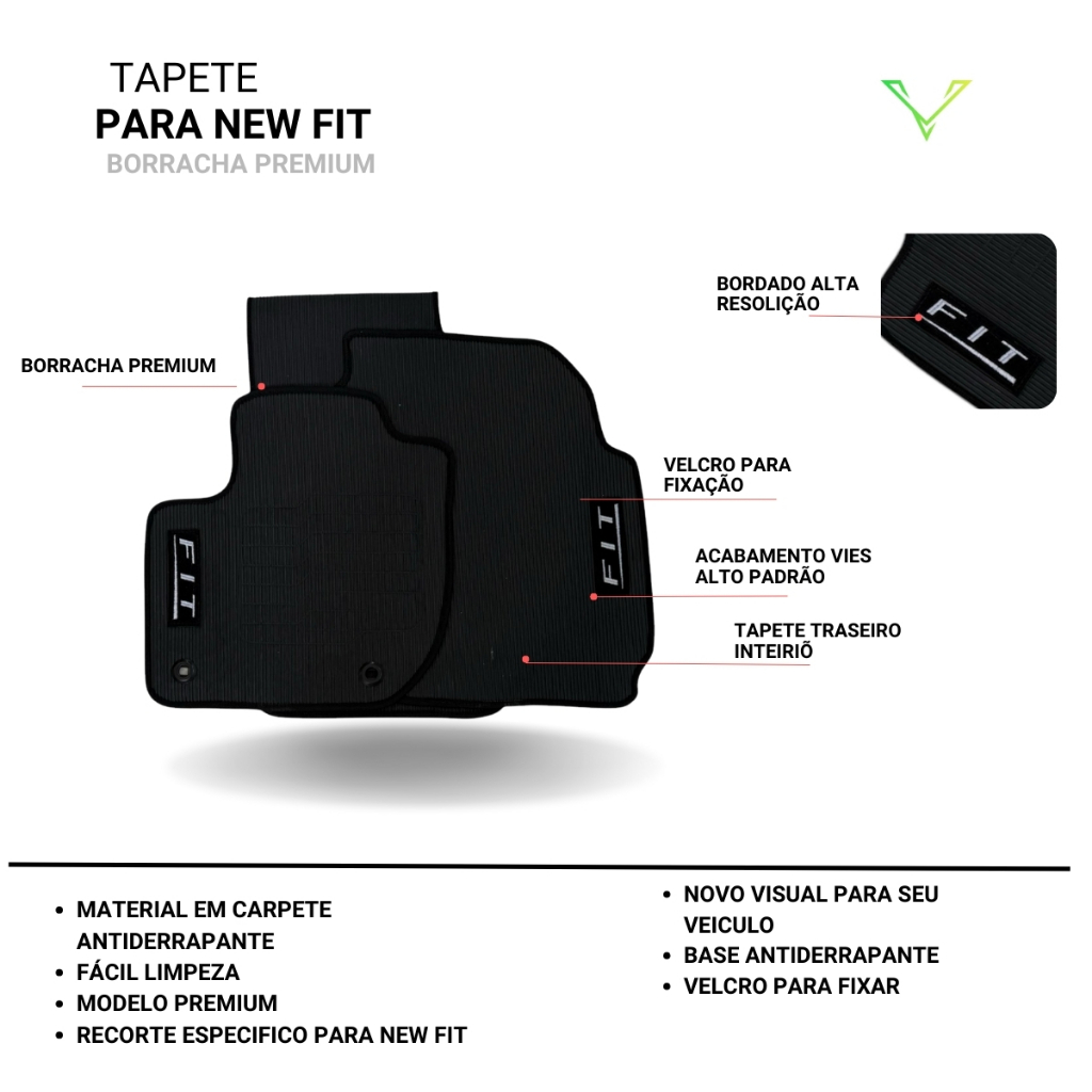 JOGO TAPETE BORRACHA PARA HONDA NEW FIT BORDADO INTEIRIÇO 2015 2016 2017 2018 2019 2020 2021 2022 2023 2024 2025