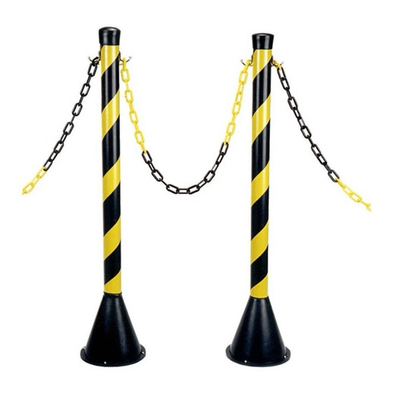 kit 2 Pedestal + 3 metros de corrente Sinalização Isolamento cor amarelo e preto.