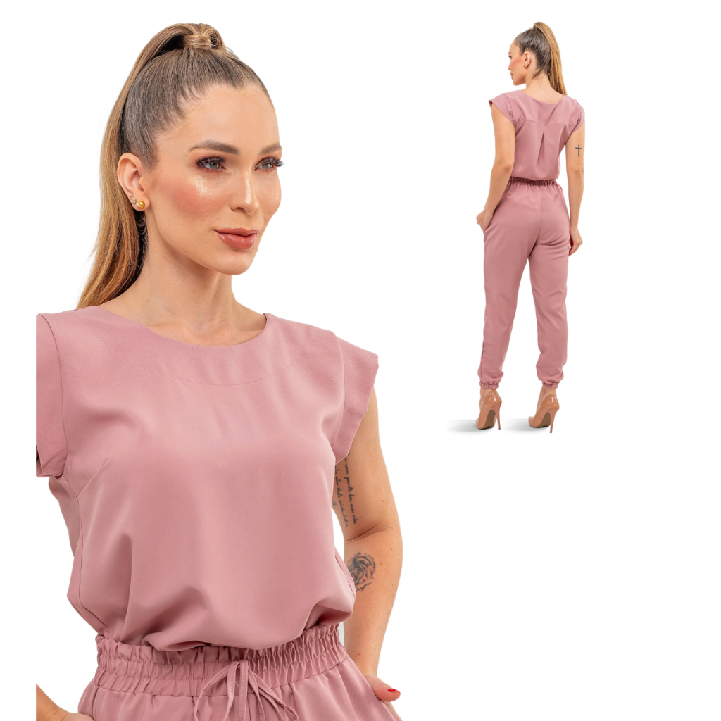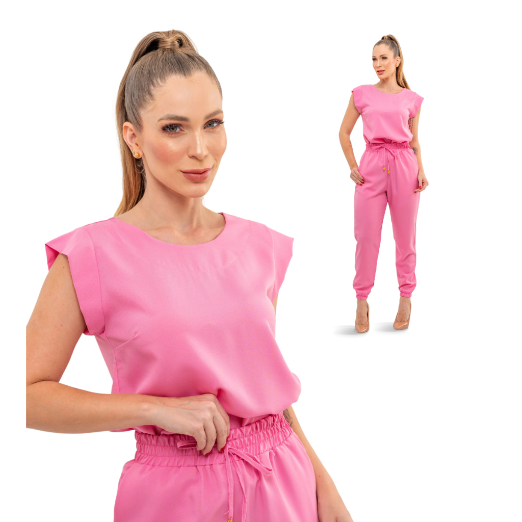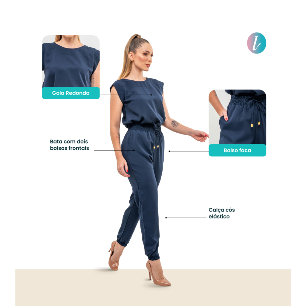 Pijama Cirúrgico Feminino Scrub Privativo Rebeca Oxfordine Manga Muscle Calça Jogger Fardamento