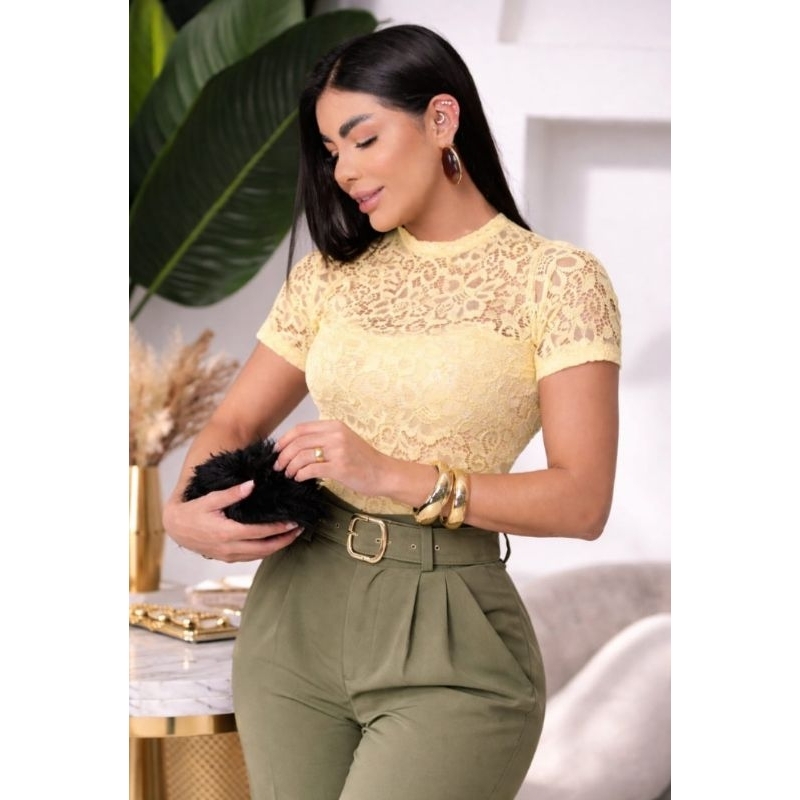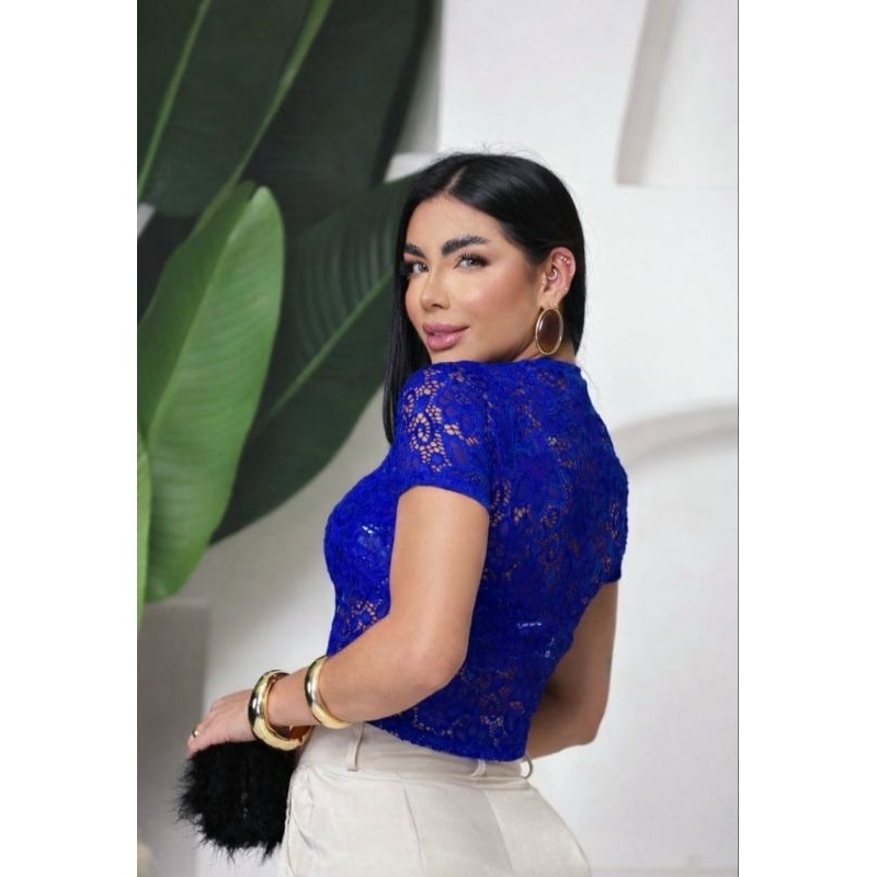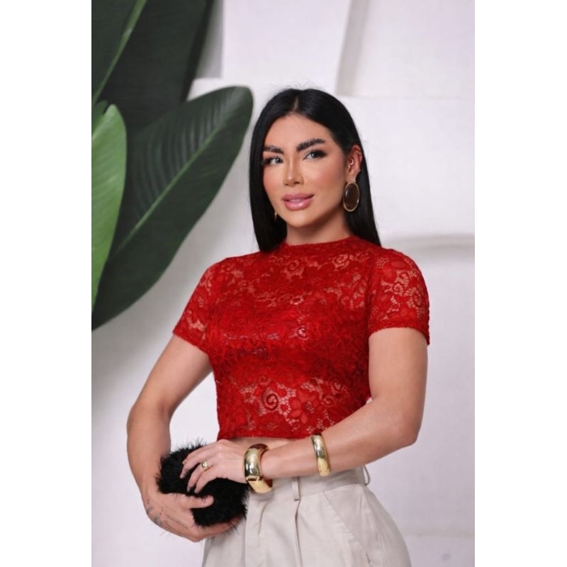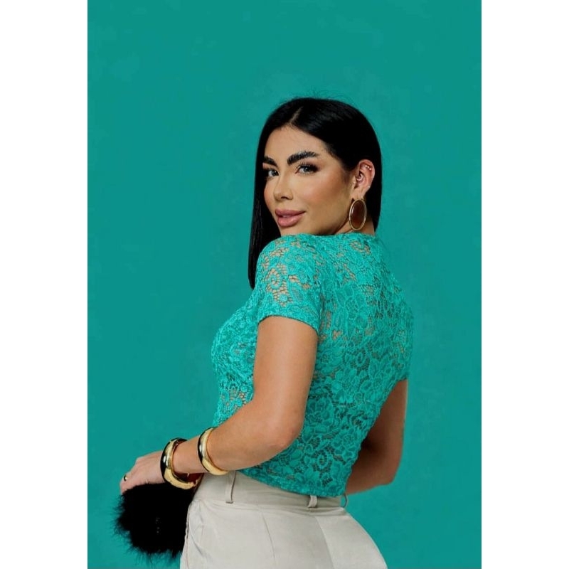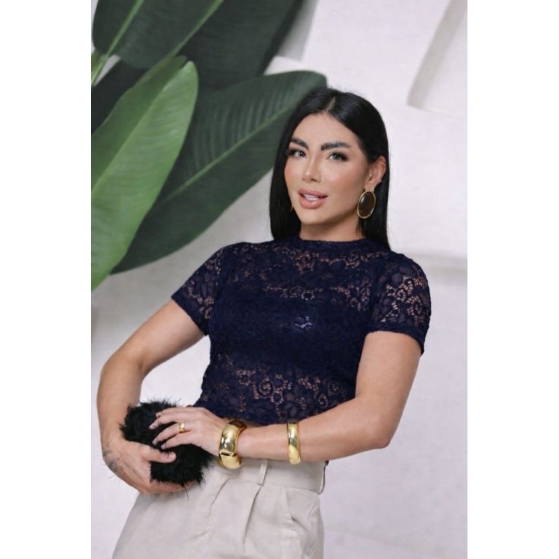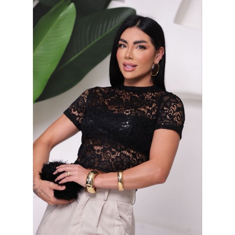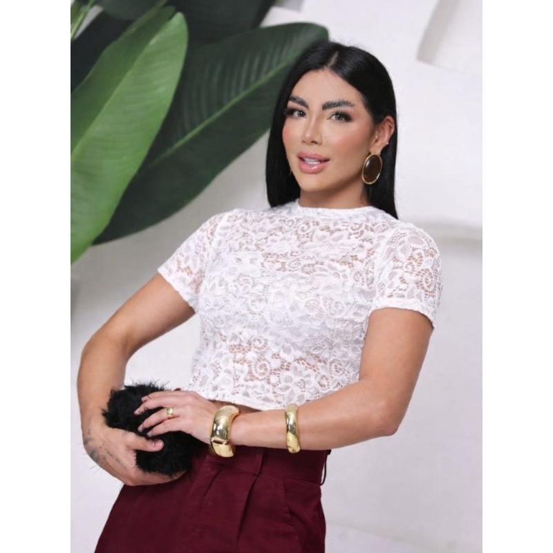 Blusa RENDA femenina transparente elegante social estilo gringa pra festa de balada malha renda