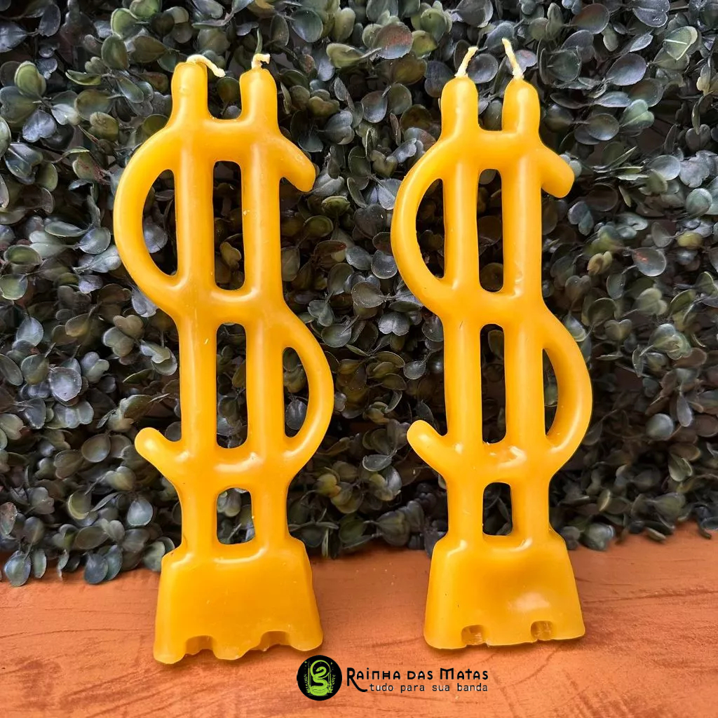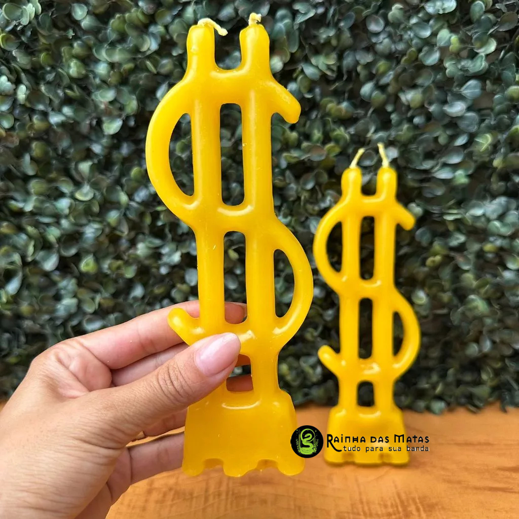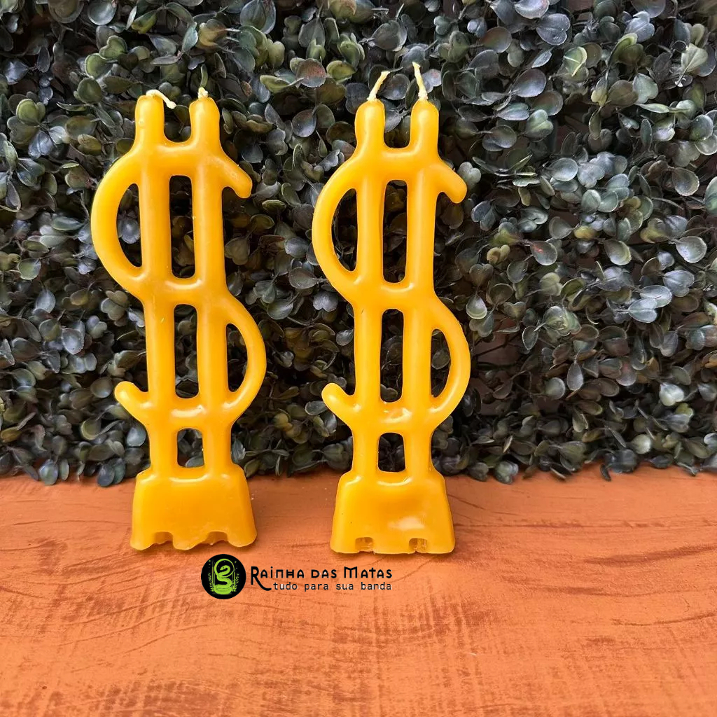 Kit com 02 Vela Chama Dinheiro Cifrão Amarela Para Rituais Magias Umbanda Candomblé