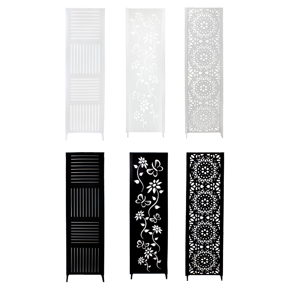 1 Biombo Pintado Branco Preto Divisor Ambiente Painel Separador Madeira Mdf Tingido Divisória Com Pé
