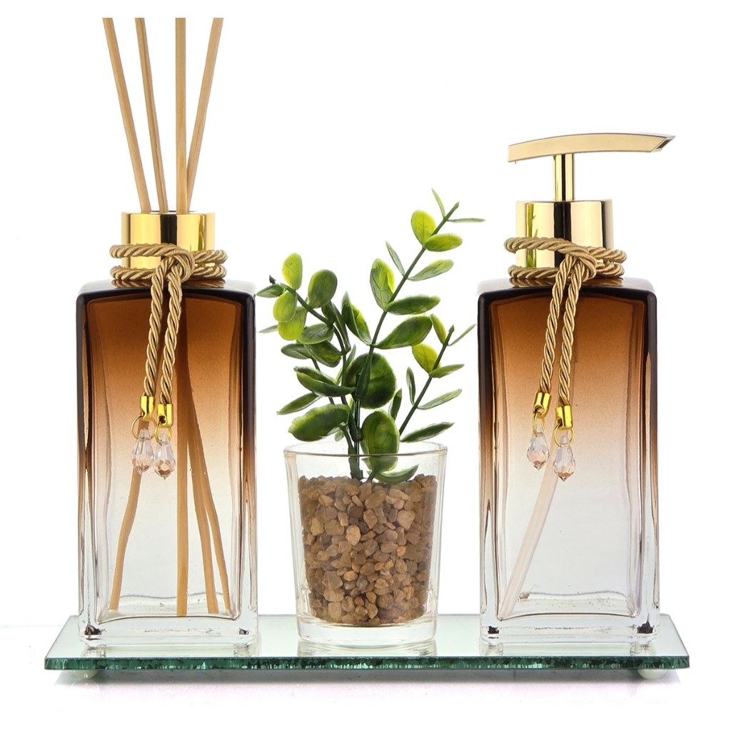 Kit Lavabo Luxo Vidro Enfeite Bandeja Decoração Presente Pia Bancada Banheiro