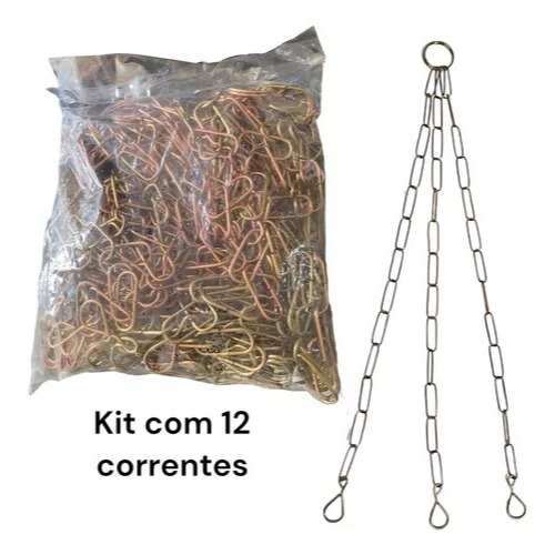 Kit 12 - 6 e 1 Und Correntes Tripla 45cm e 55cm Aço P/ Vasos Suspensos Plantas