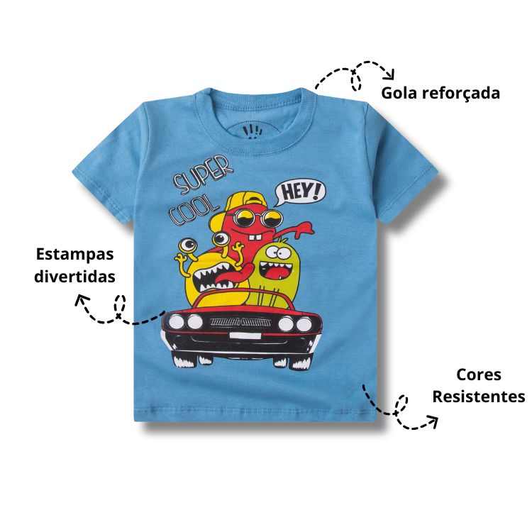 Kit Sortido 5 Camisetas Manga Curta Estampada Masculina/Menino Infantil e Juvenil do 2 ao 14
