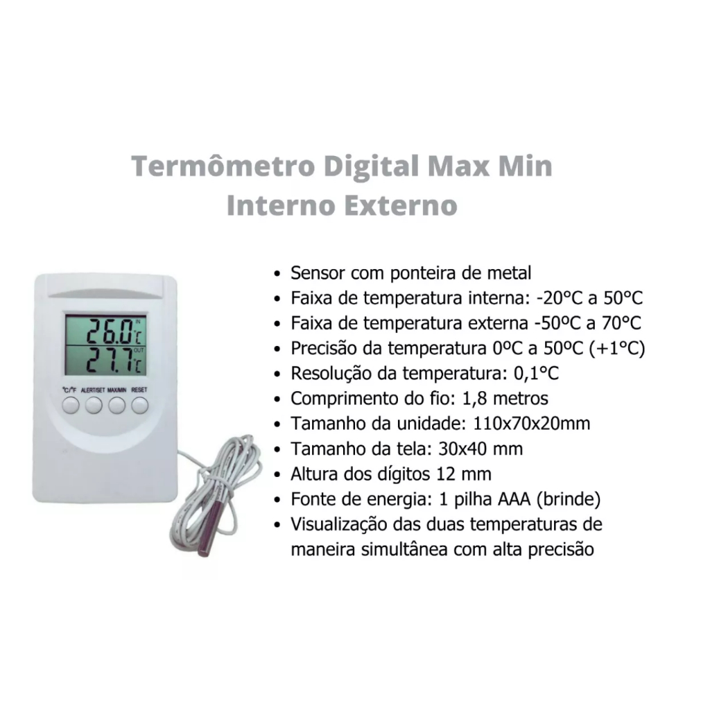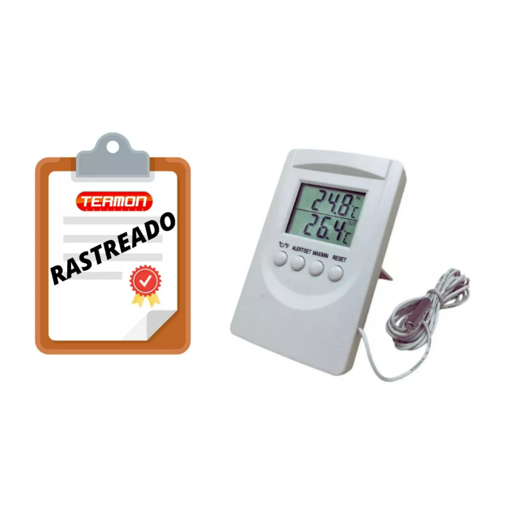 Termômetro Digital Alarme Temperatura Máxima e Mínima Interno e Externo Certificado de Calibração Geladeira Freezer