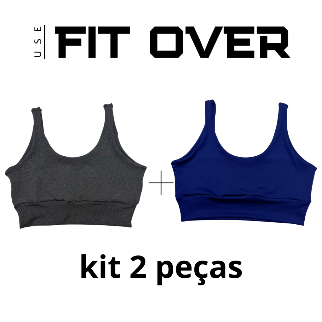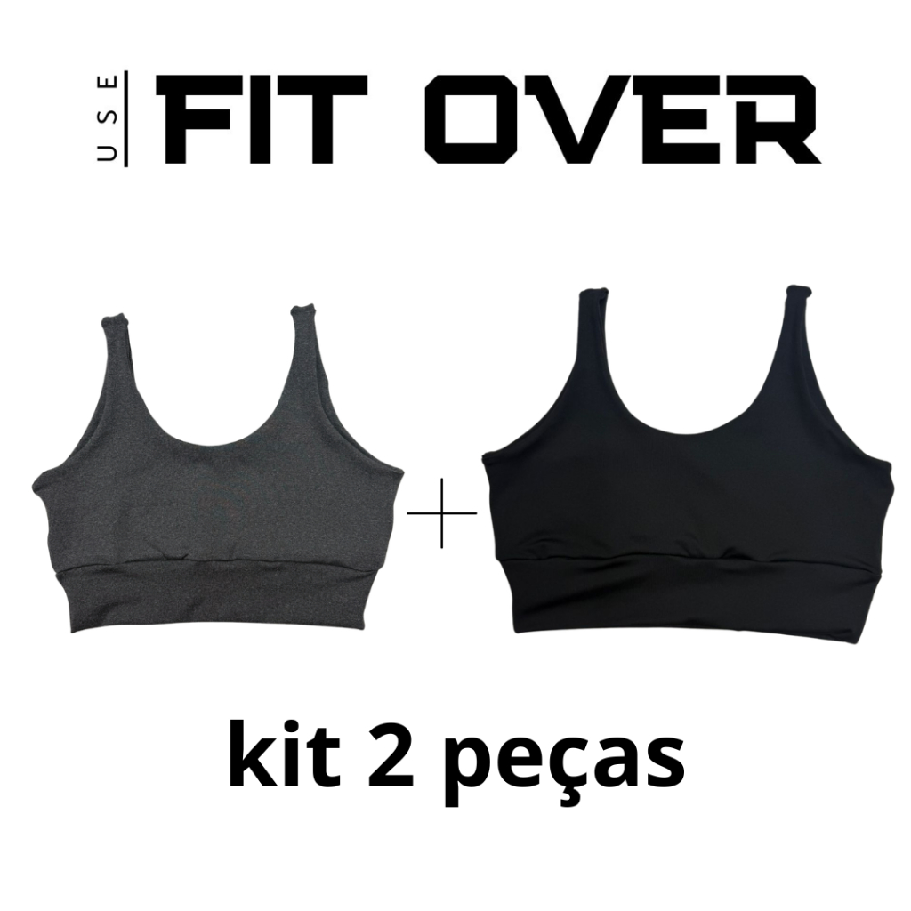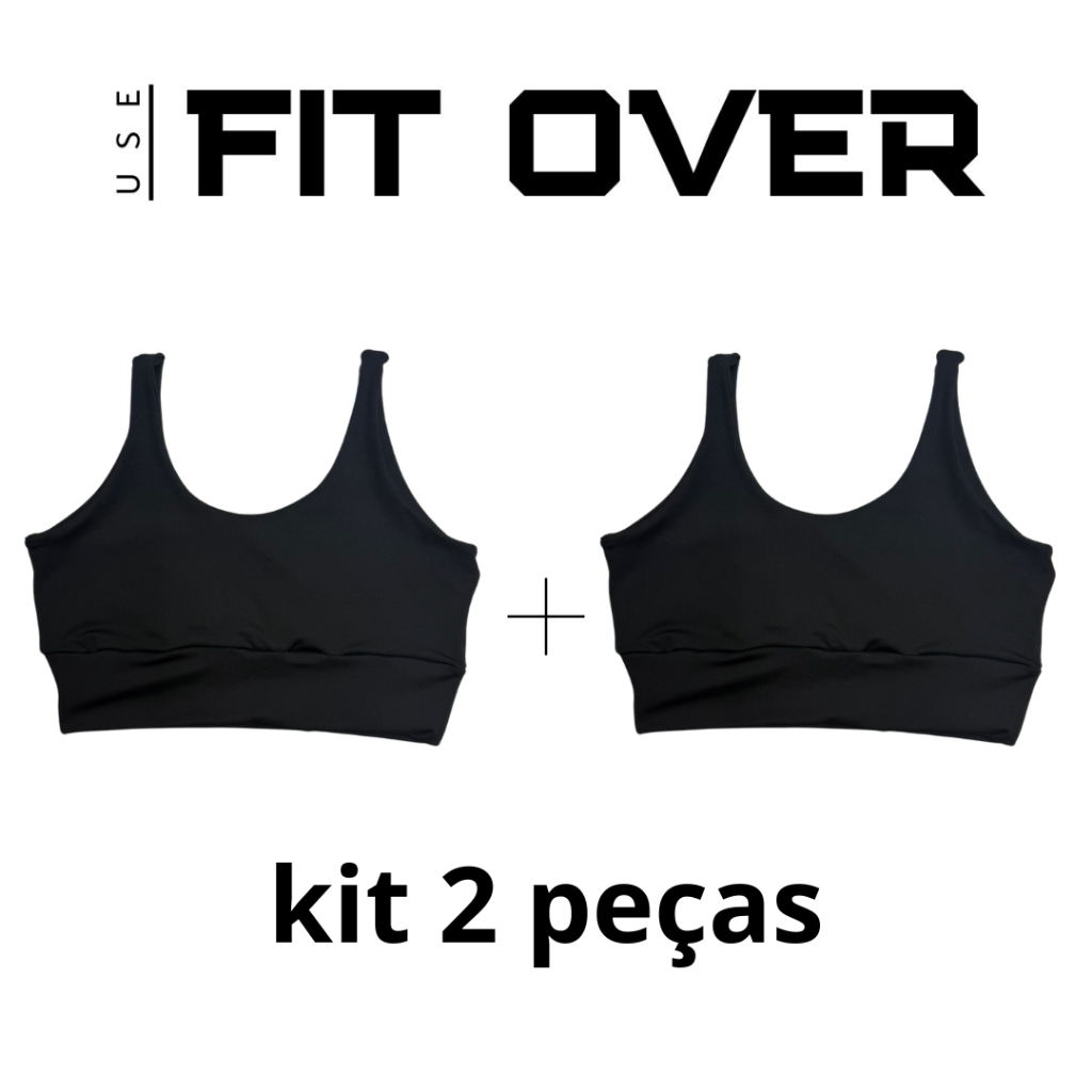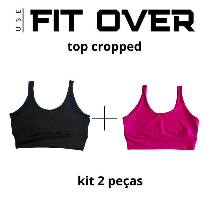 Kit 2 top cropped duplo sustentação forrado uv50+ academia básico