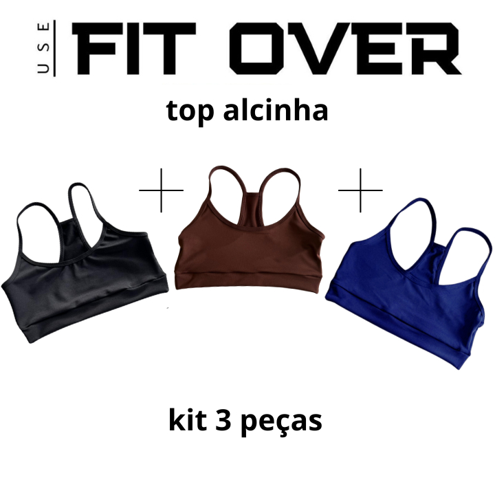 Kit 3 tops fitness básico - alcinha - nadador - suplex - academia - crossfit - treino - fitover