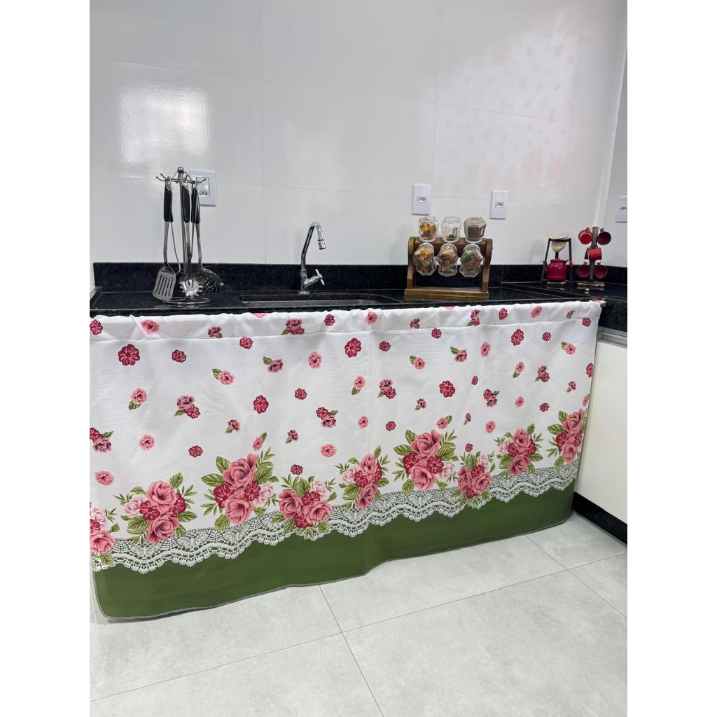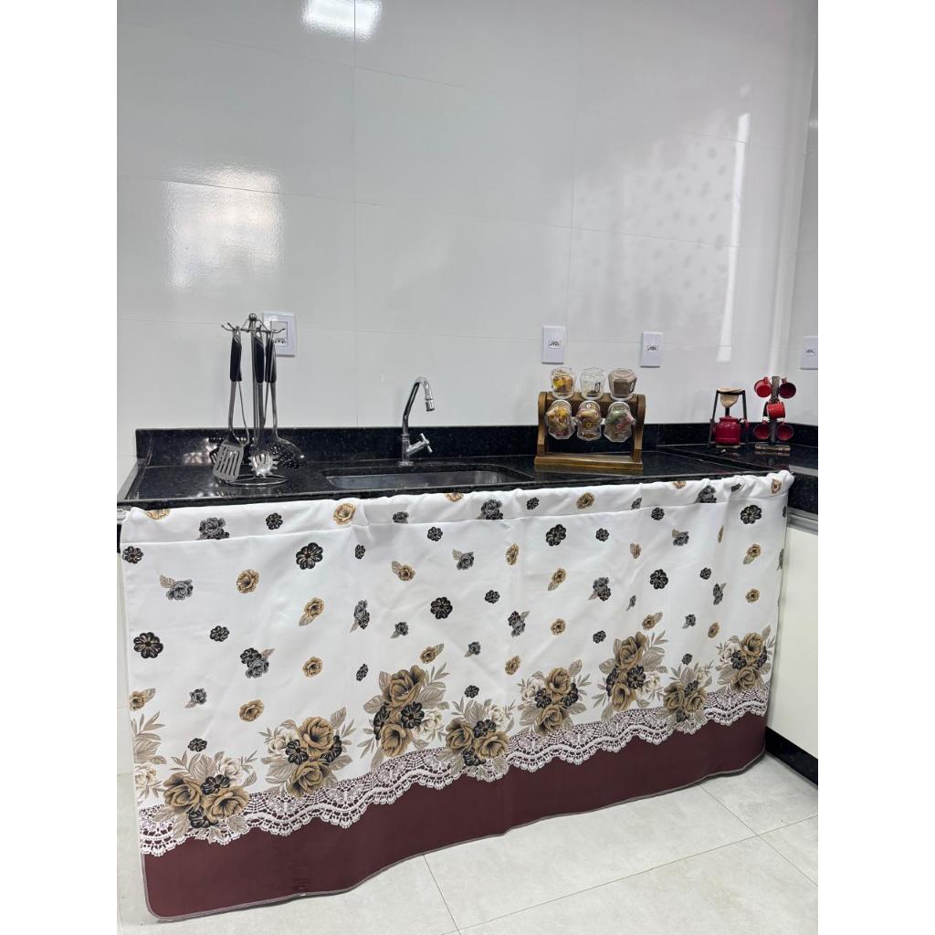 Cortina de Pia Para a Cozinha Estampas Vibrantes Tamanho 1,50 x 0,80m em Tecido Oxford Nacional