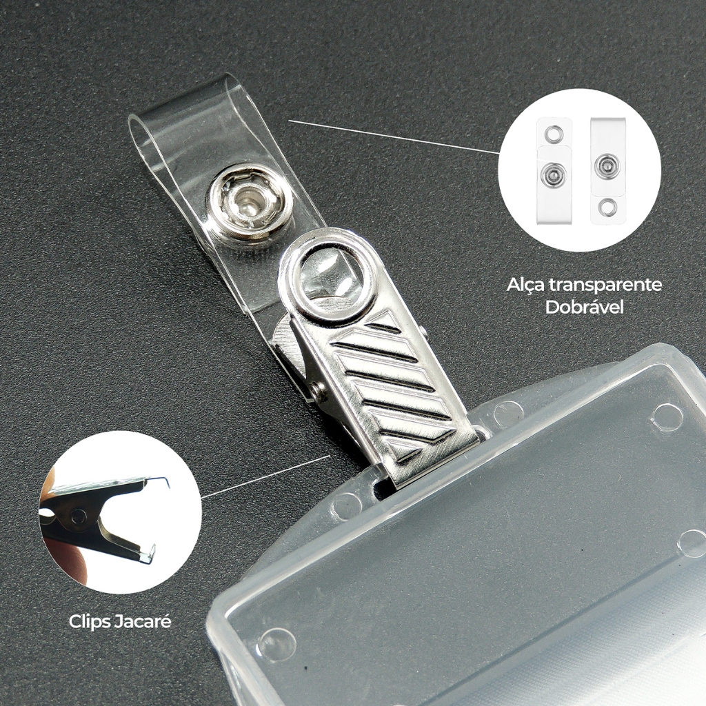 Presilha Jacaré Alça Transparente - Clips Jacaré para Crachá - 10 UN