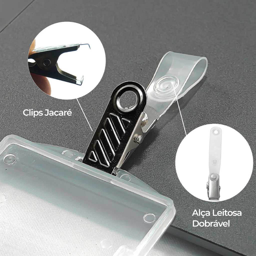 Presilha Jacaré com Alça Leitosa - Clips Jacaré para Crachá - 50 UN