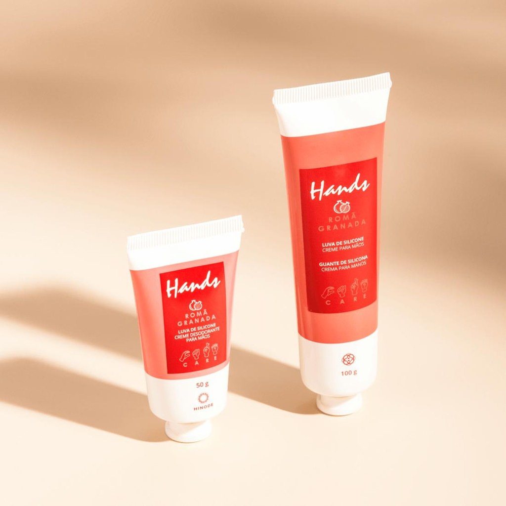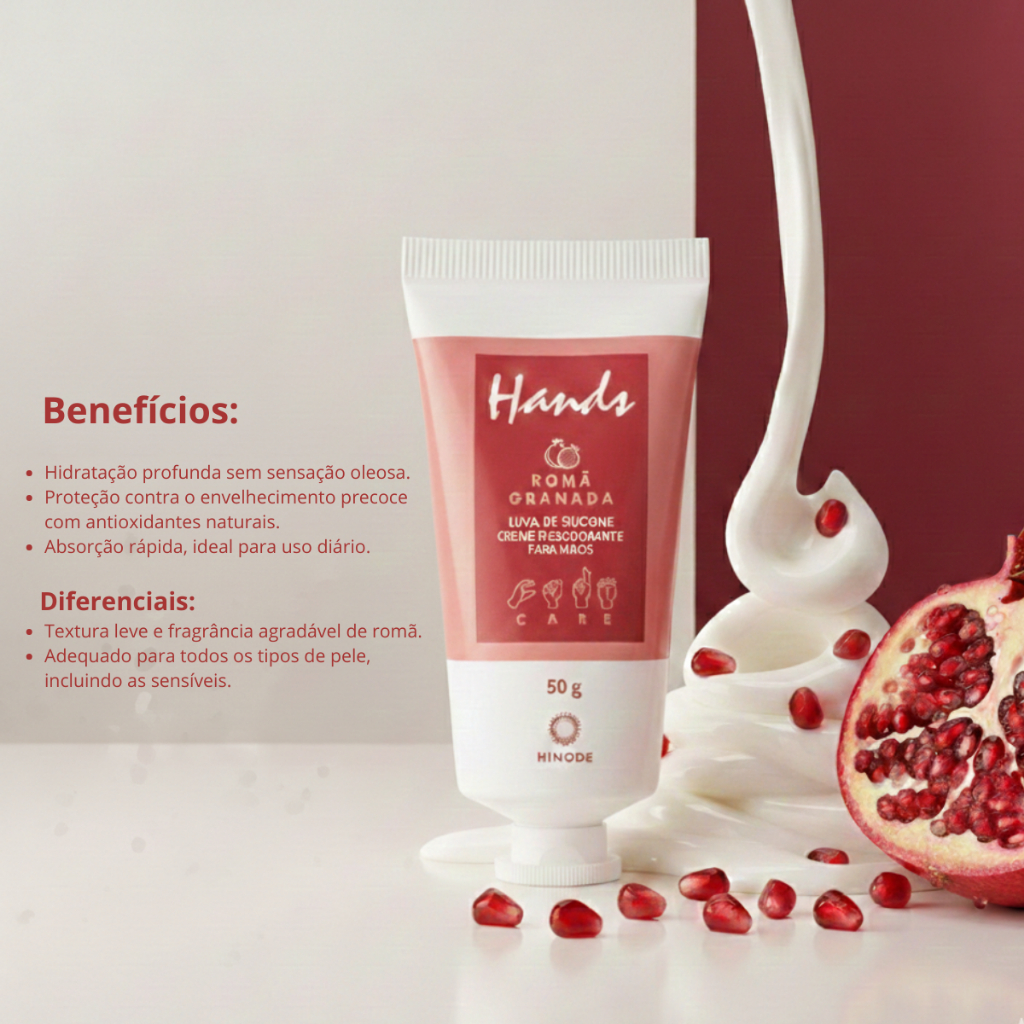 Miniatura Luva De Silicone Romã Hands Creme Para as Mãos Hinode 50g