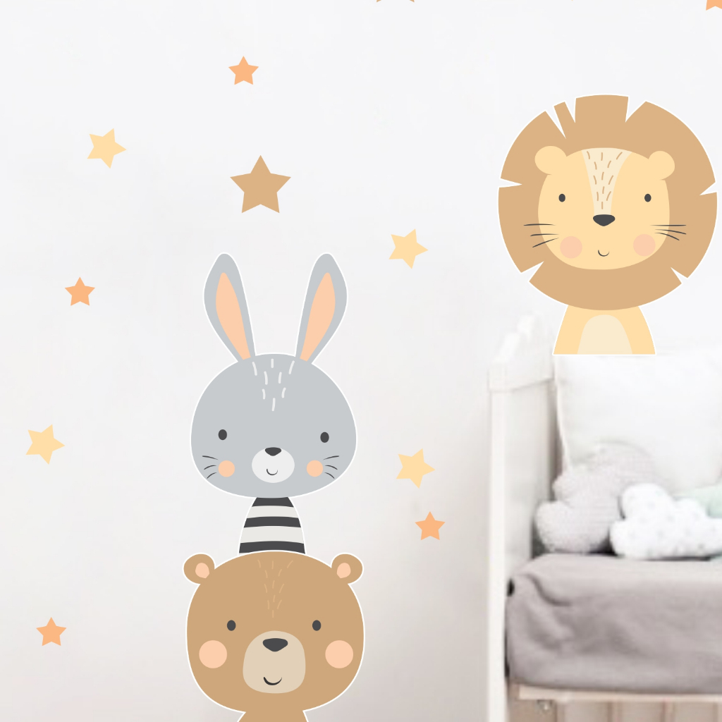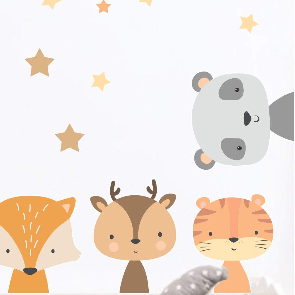 Adesivo de parede Infantil Bichinhos Baby Safari com estrelas decoração quartinho bebê