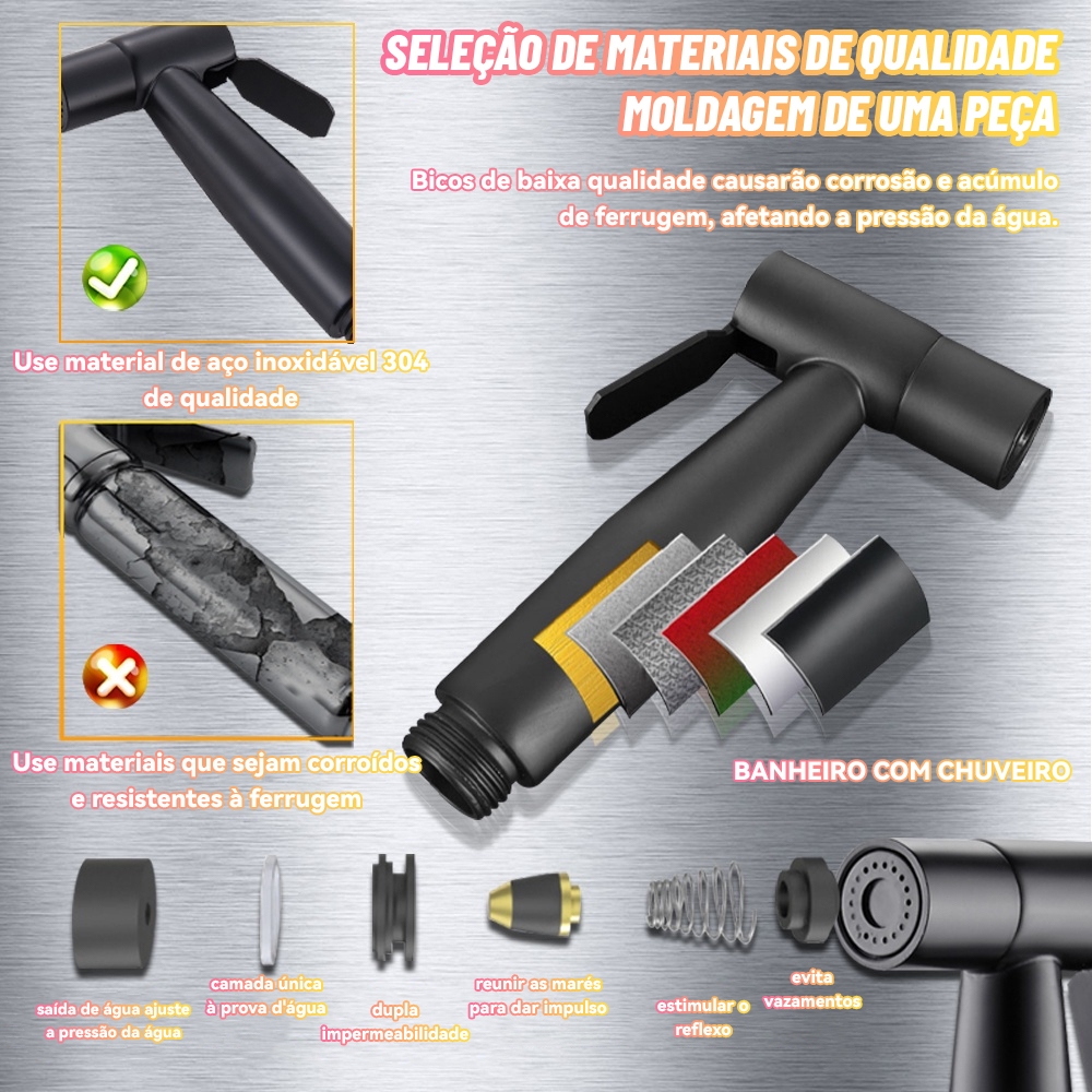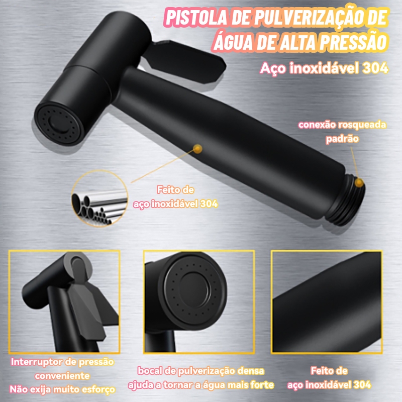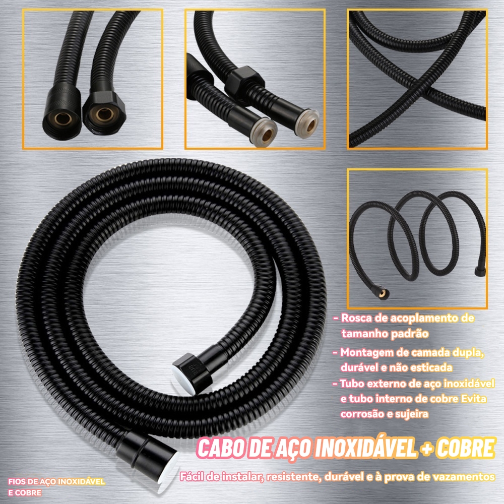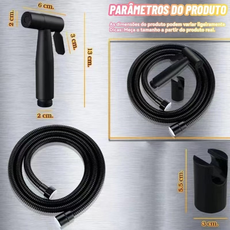 Kit Ducha inoxidável Higiênica Escovado Banheiro Lavabo-PRETO