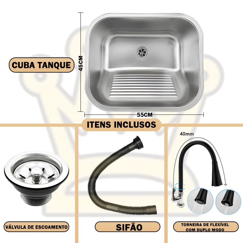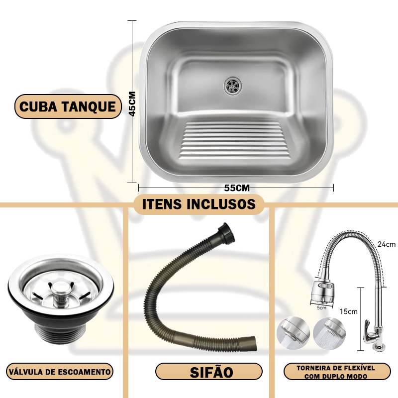 Tanque Monobloco Lavanderia Aço Inox Escovado 44 X 44 X 20 cm-SUS201