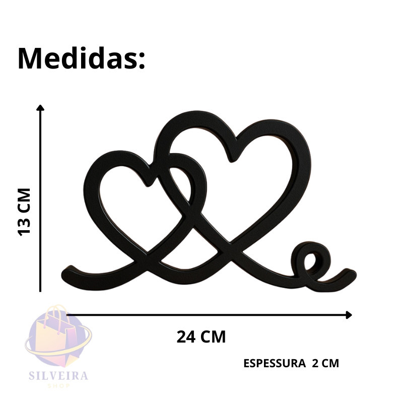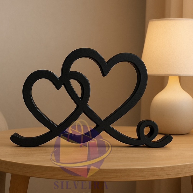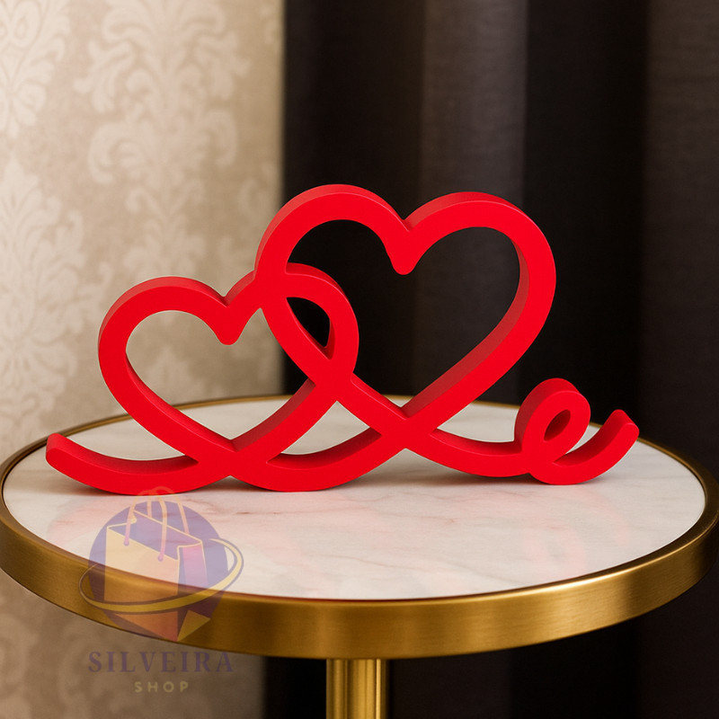 Estatueta Coração Romance 24cm - Decoração Casal Amor Eterno Enfeite para Mesa Quarto Prateleira