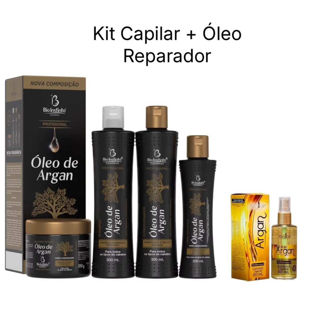 Kit Capilar Óleo de Argan c/ 4 Itens Bio Instinto + Óleo Supreme Argan 60 ml Mary Life