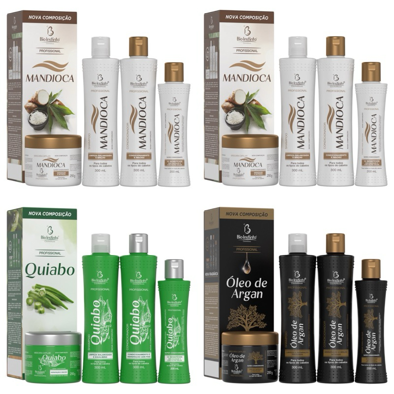 Kit Tratamento Capilar com 4 kits (2 Mandioca,1 Quiabo,1 Argan)- Bio Instinto