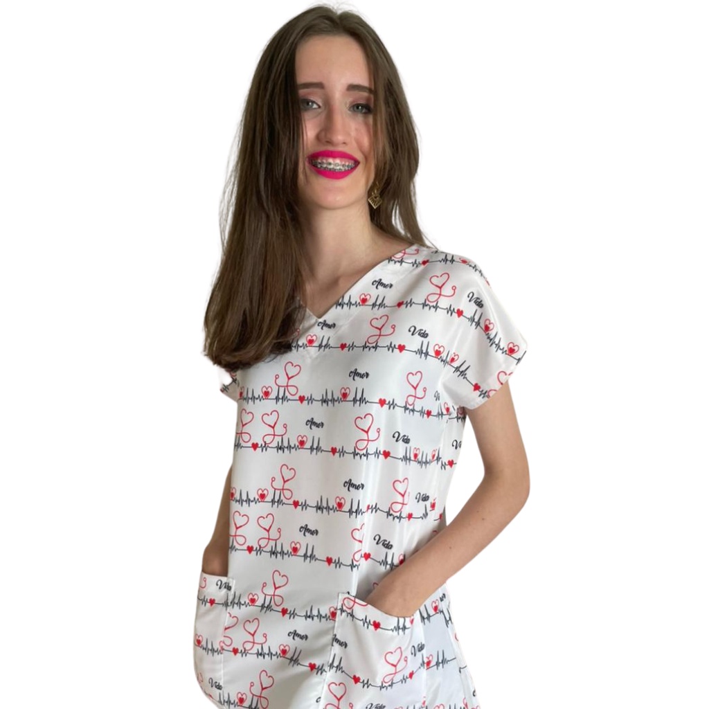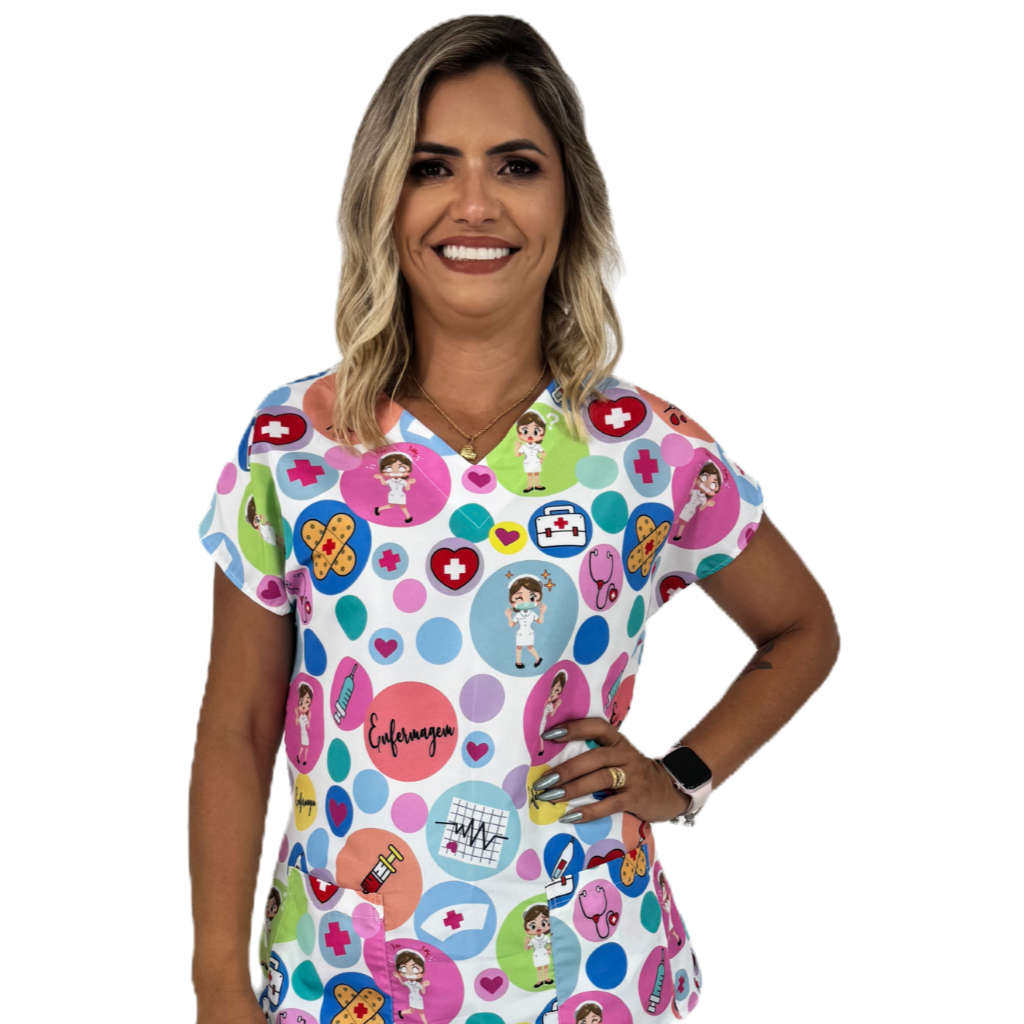 Blusa Pijama Cirúrgico Estampado - Scrub Hospitalar Enfermagem Medicina