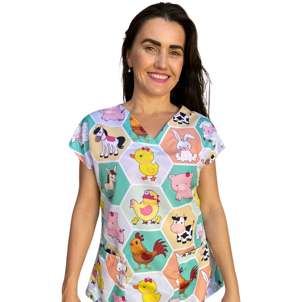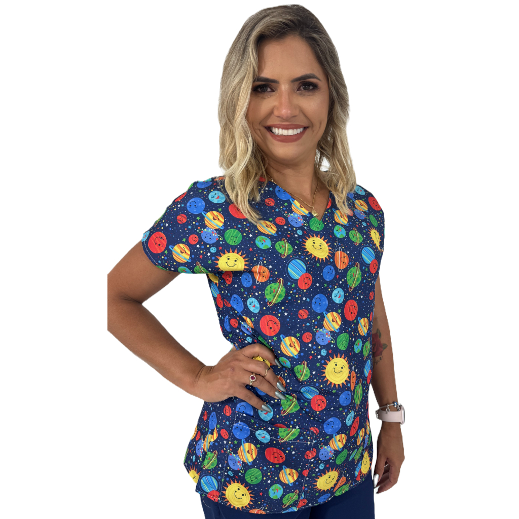 Blusa Pijama Scrub Hospitalar Enfermagem Pediatria Infantil