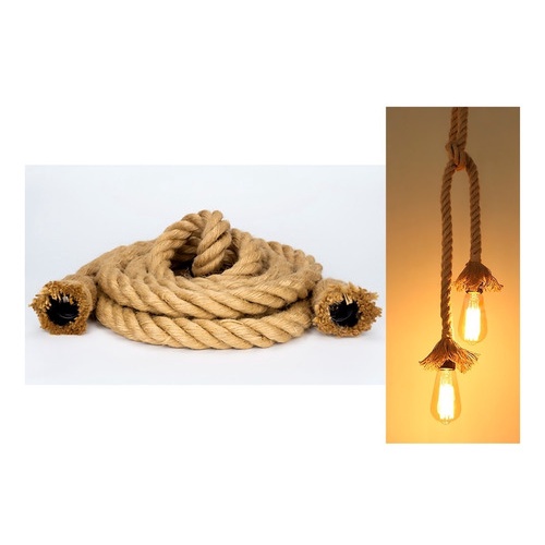 01 Luminária Pendente Duplos Design Rustico Corda Bocal E27