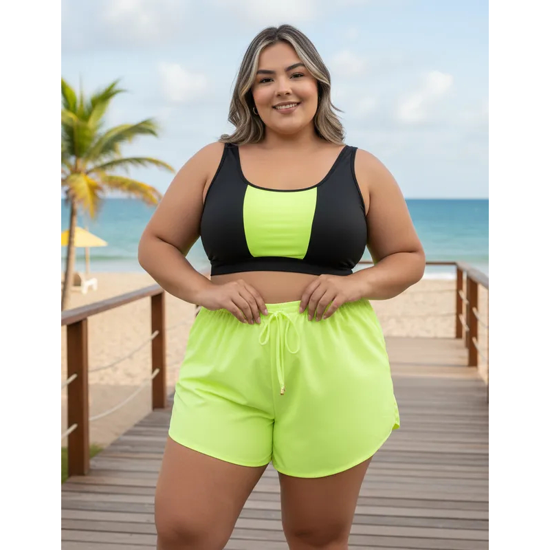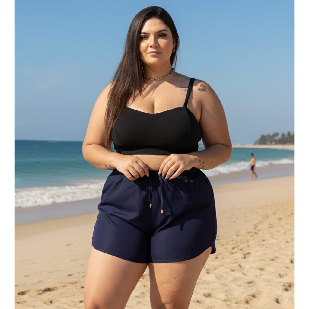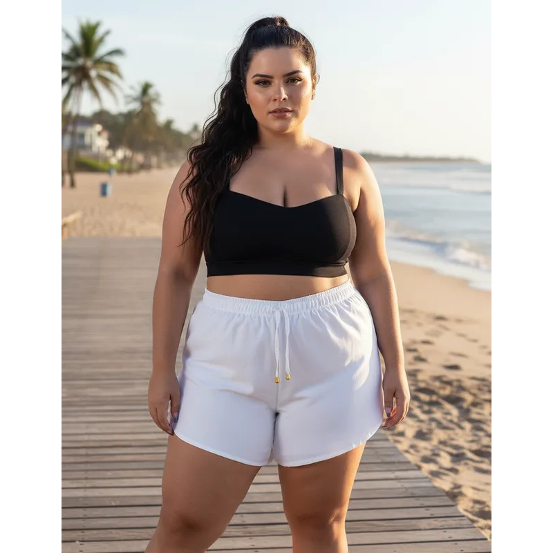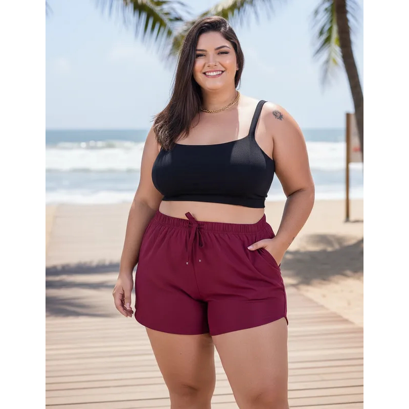 Short Plus Size Feminino Saída De Praia Piscina Leve E Soltinho Shortinho Tactel C/ Elastano Cordão