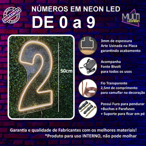Número de LED Neon 50cm com Base Decoração Festa de Aniversário de 0 a 9 Painel Luminária Evento