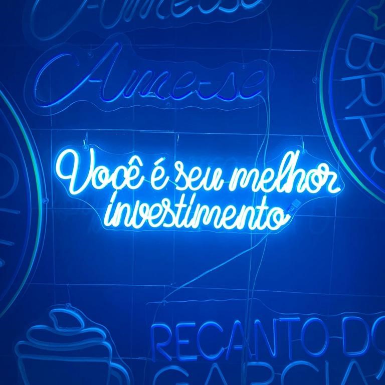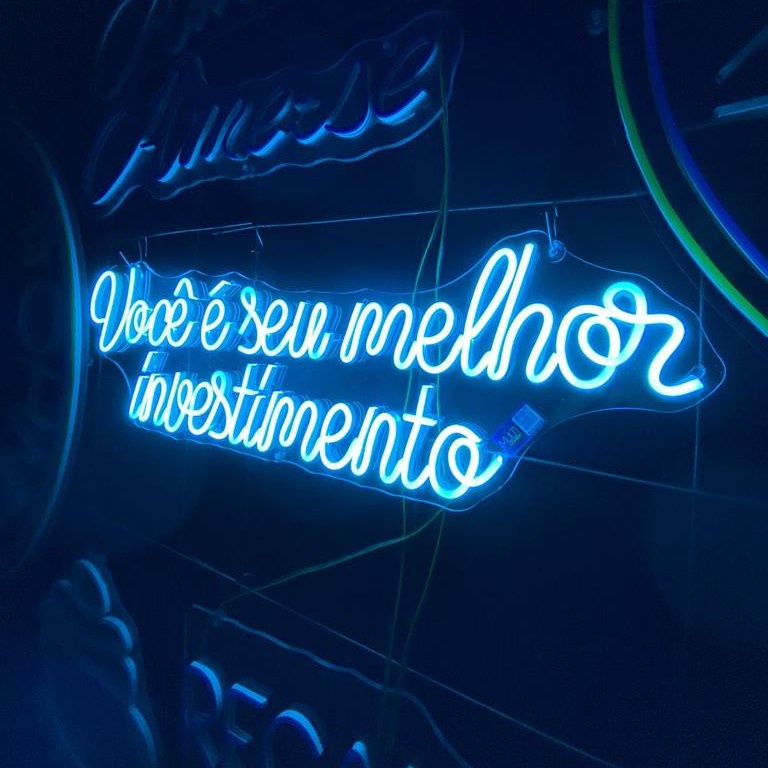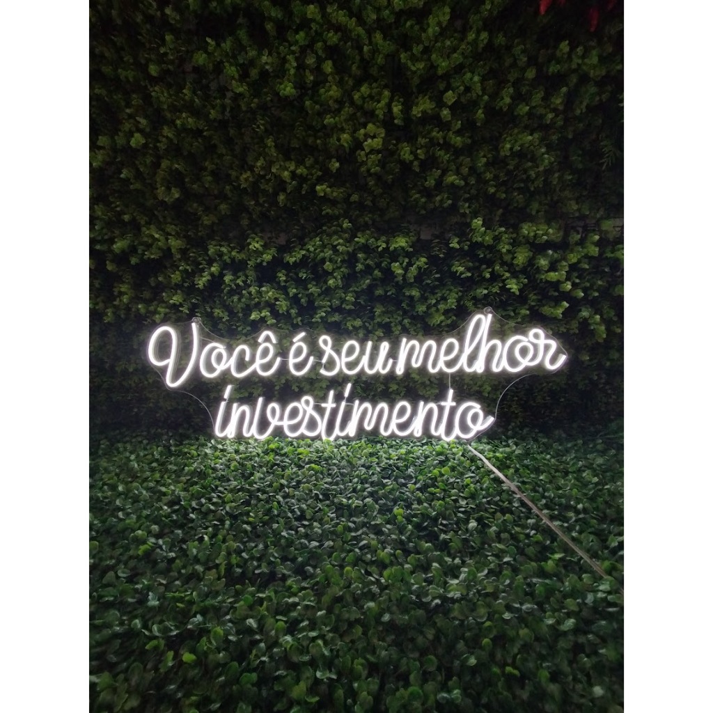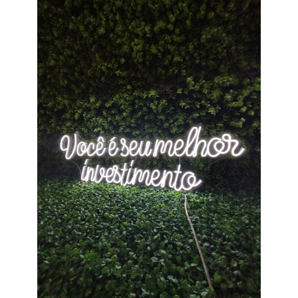 Letreiro Você é Seu Melhor Investimento em Neon LED 70x25cm Decoração Motivacional Jardim Vertical