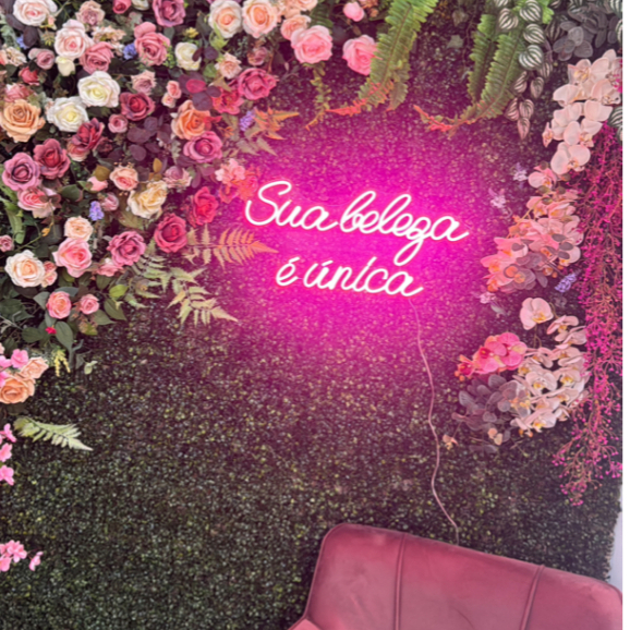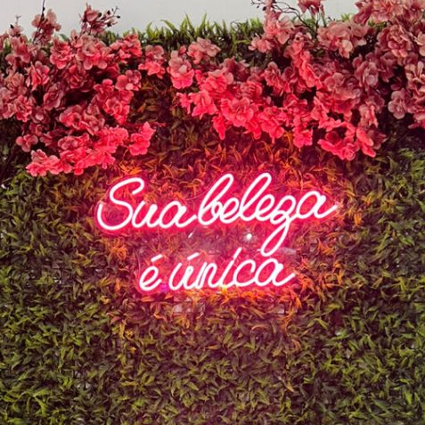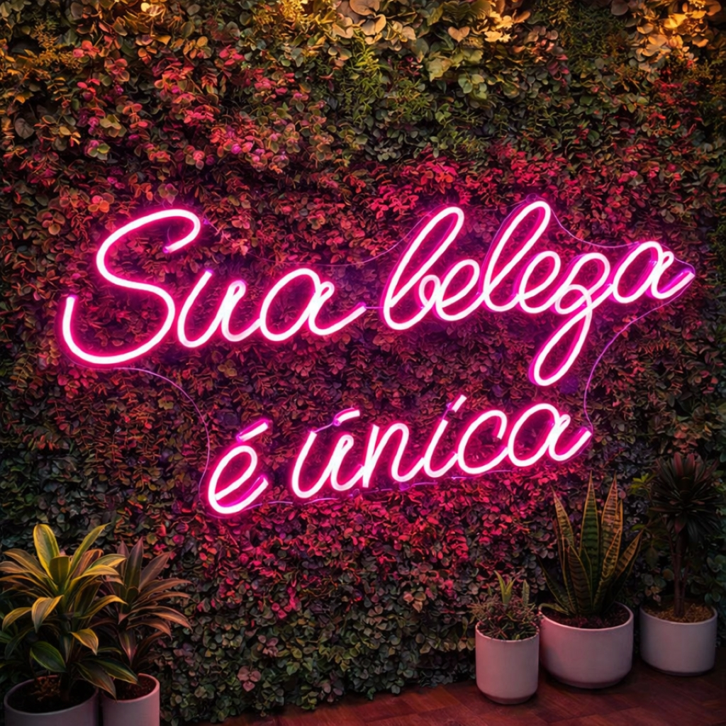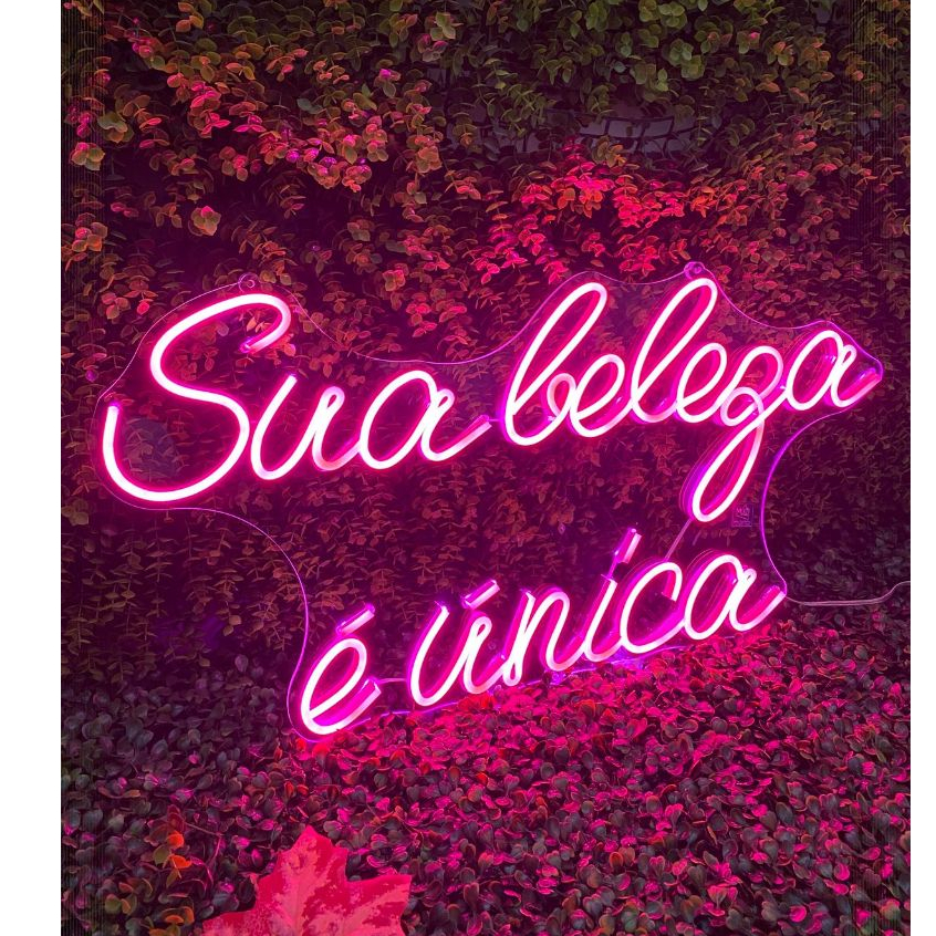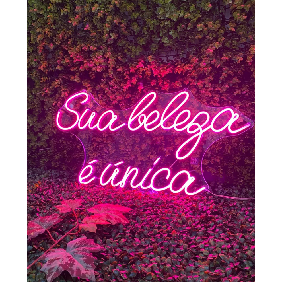 Letreiro SUA BELEZA É ÚNICA em Neon LED 60x30cm Frase Decoração Clínica Estética Jardim Vertical