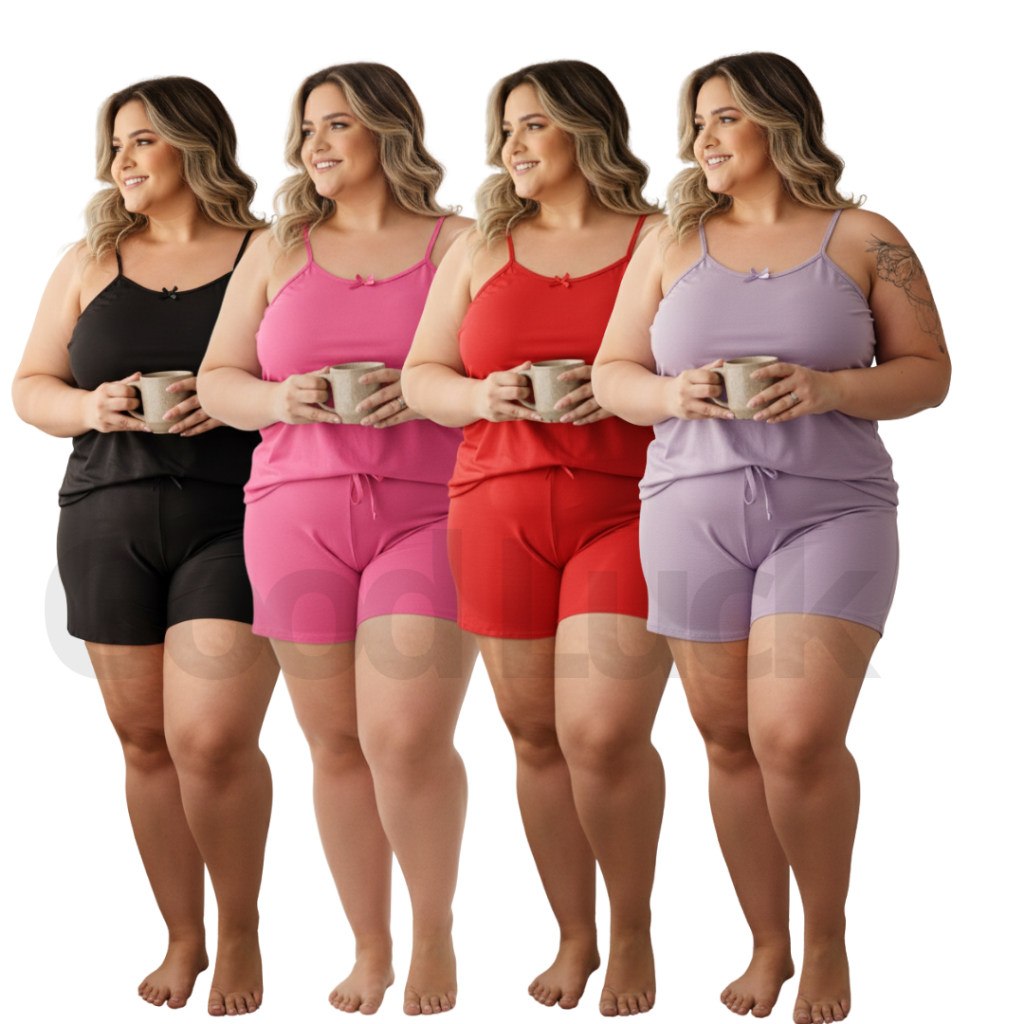 Kit 2 Pijama Feminino Baby Doll Short Doll Plus Size Super Fresquinho Moda Feminina Good Luck