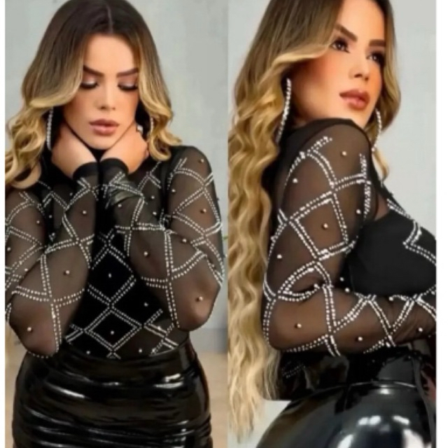Blusa Blusinha Camiseta Body Bori Bory Tule Transparente Pedraria Desenhos