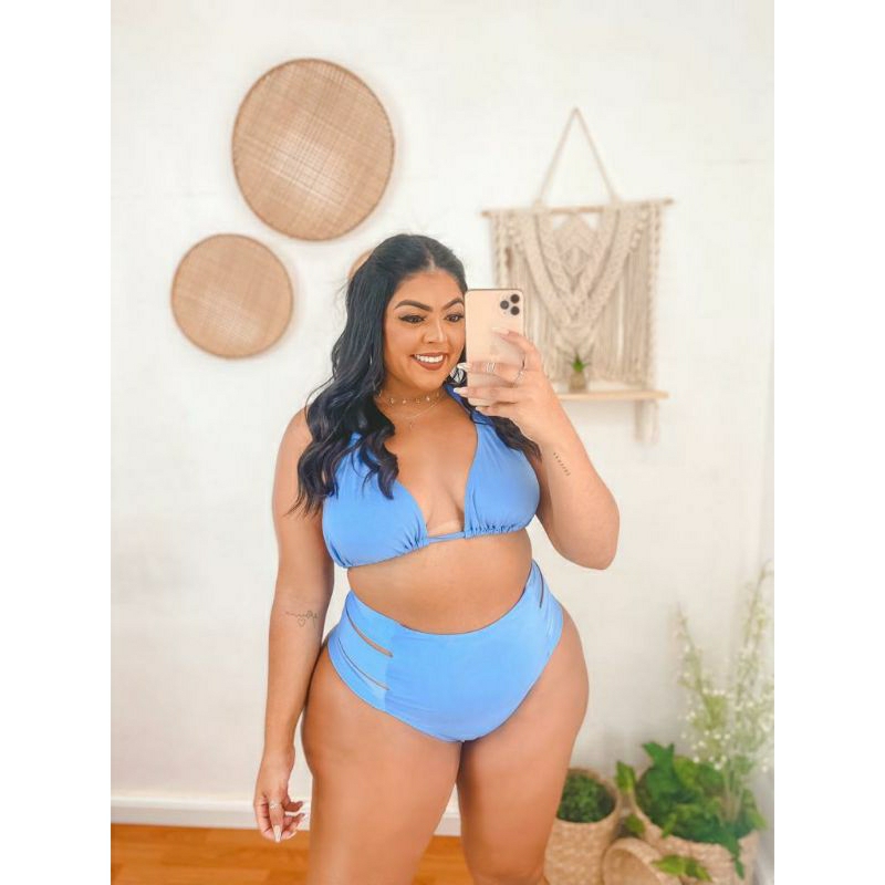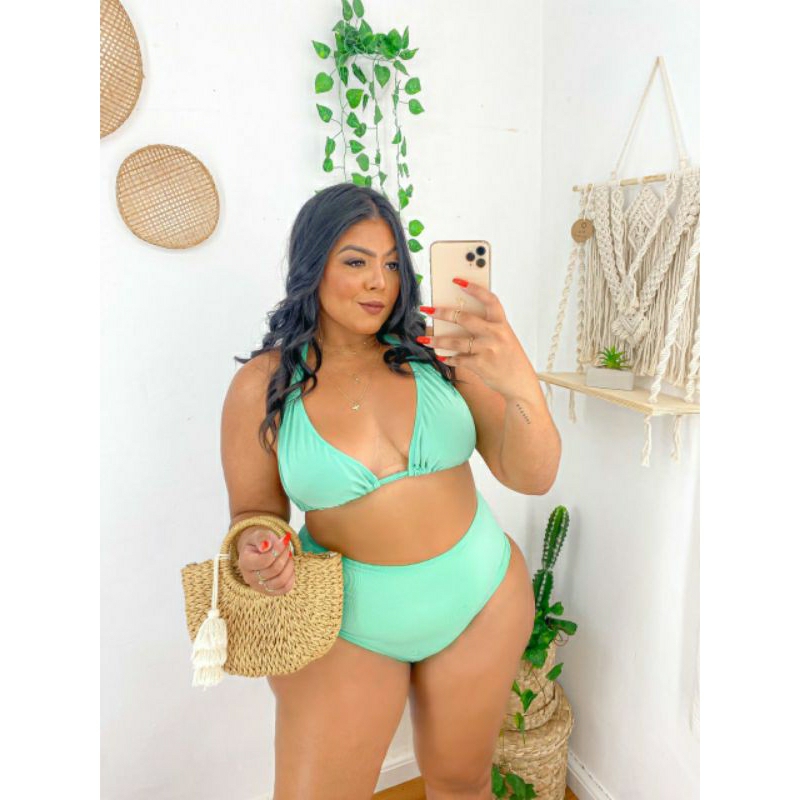Biquíni plus size cortininha hot pants