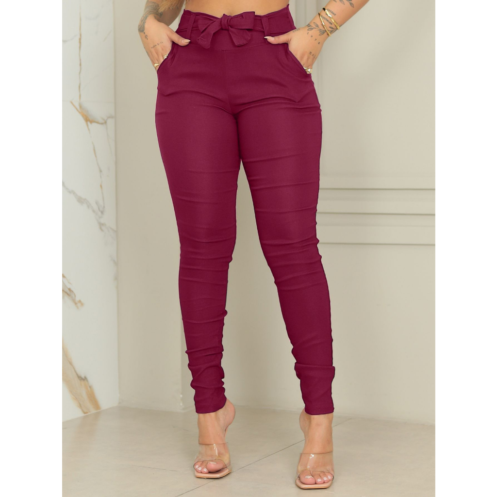 Calça Social Feminina Alfaiataria Tecido Nobre Com Elastano Clochard Laço Cinto Bolso Amarra