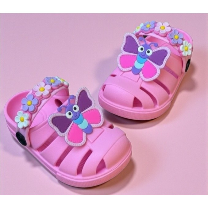 SANDALIA INFANTIL PAPETE PARA MENINAS BORBOLETA COLORIDA DELICADA LEVE MACIA SOLADO ANTIDERRAPANTE