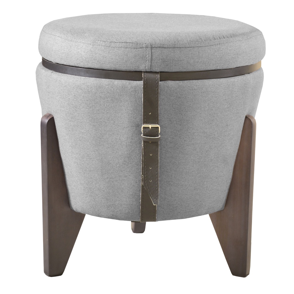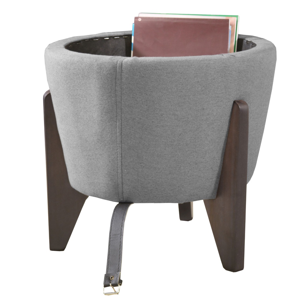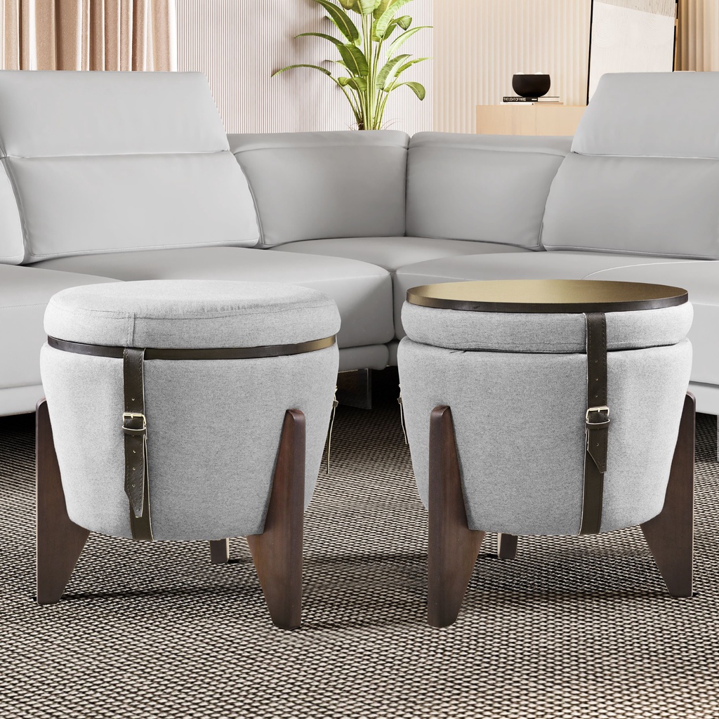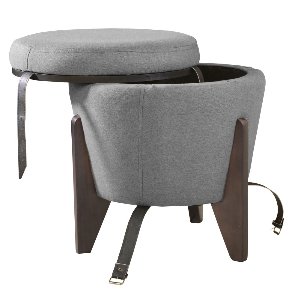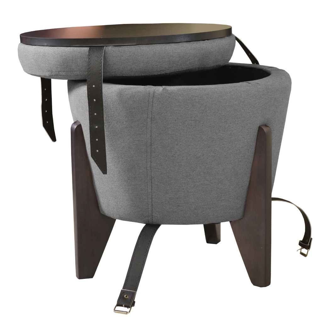 Pufe Mesa Centro Baú Pés Preto Linho Chumbo Soft Tampo Preto