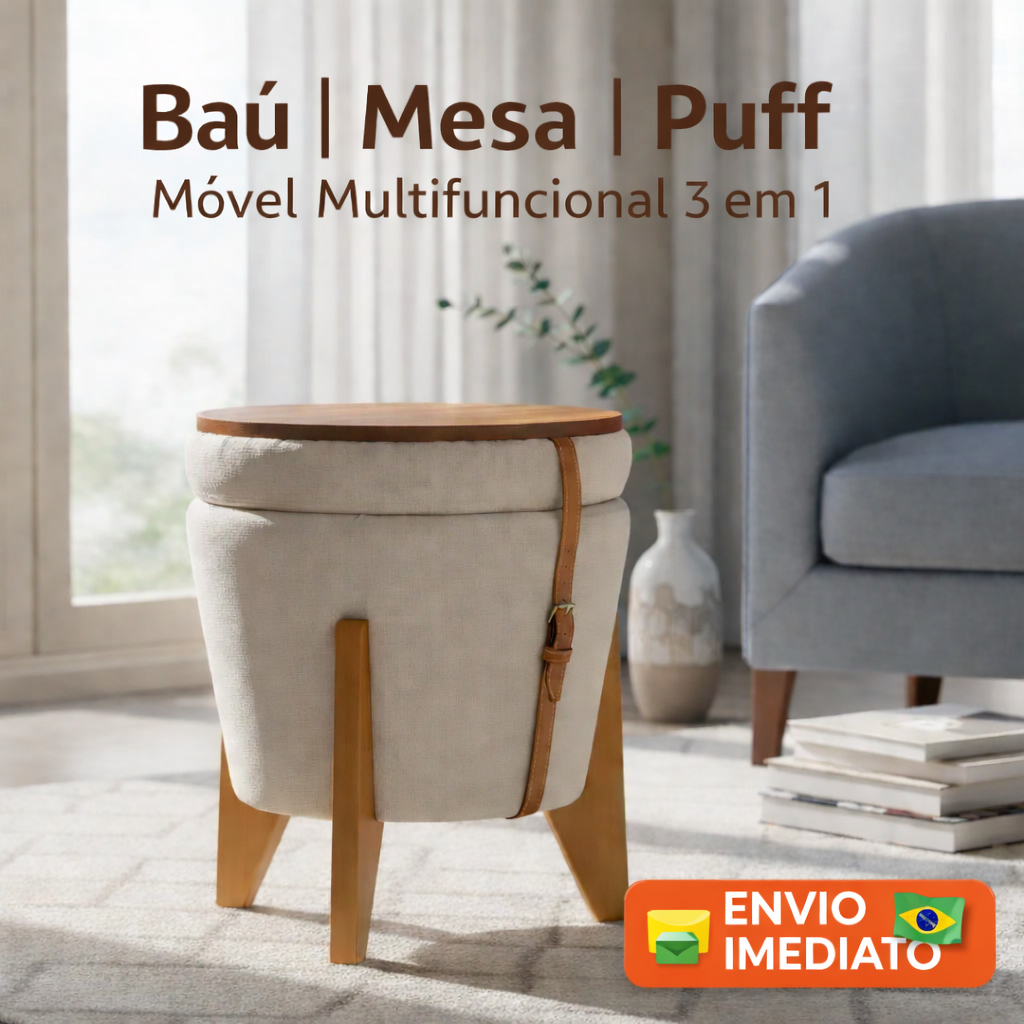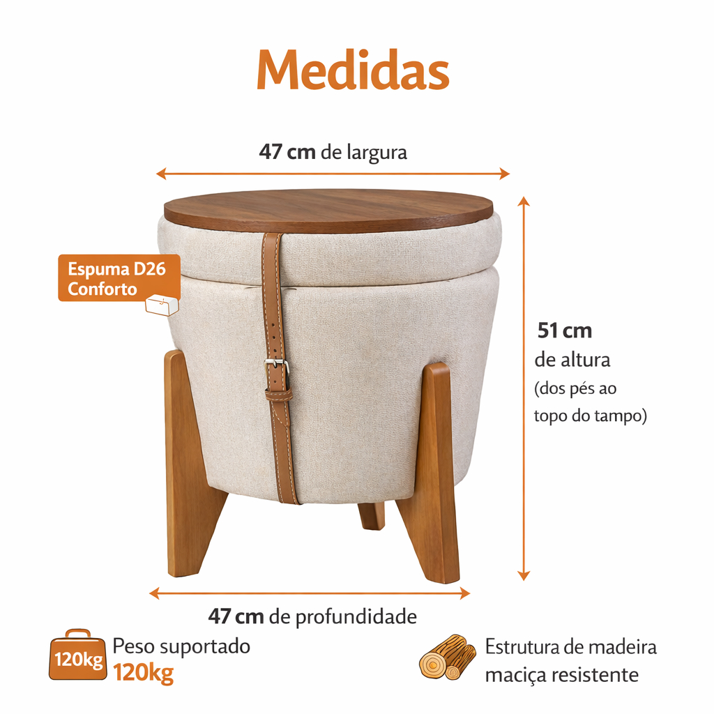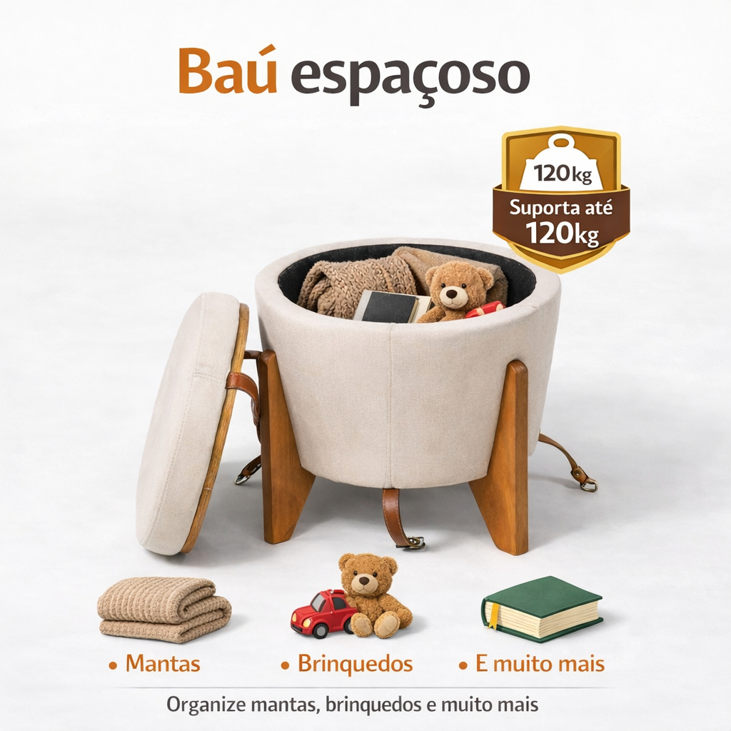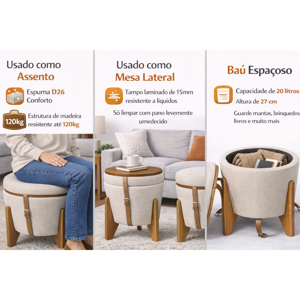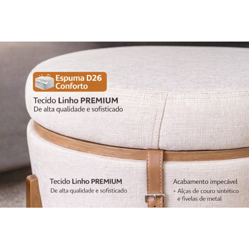 Puff Decorativo Confortável Utilidade Múltiplas Baú Flex Tampo Para Mesa Centro Linho Claro