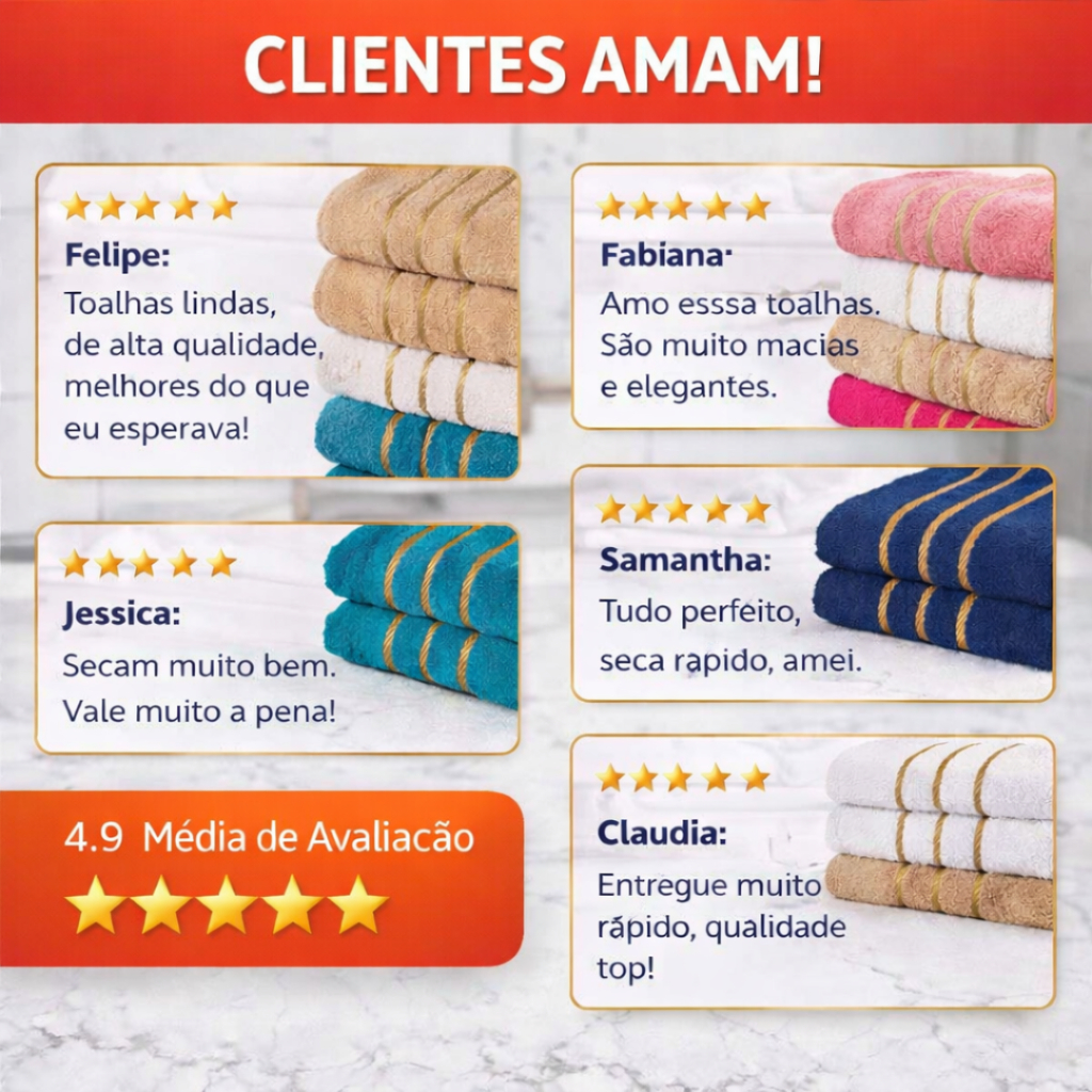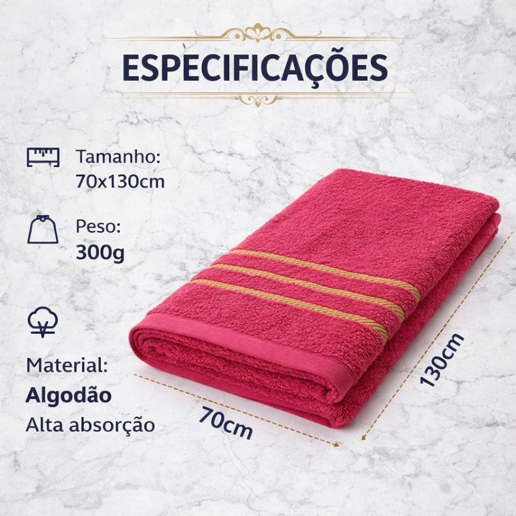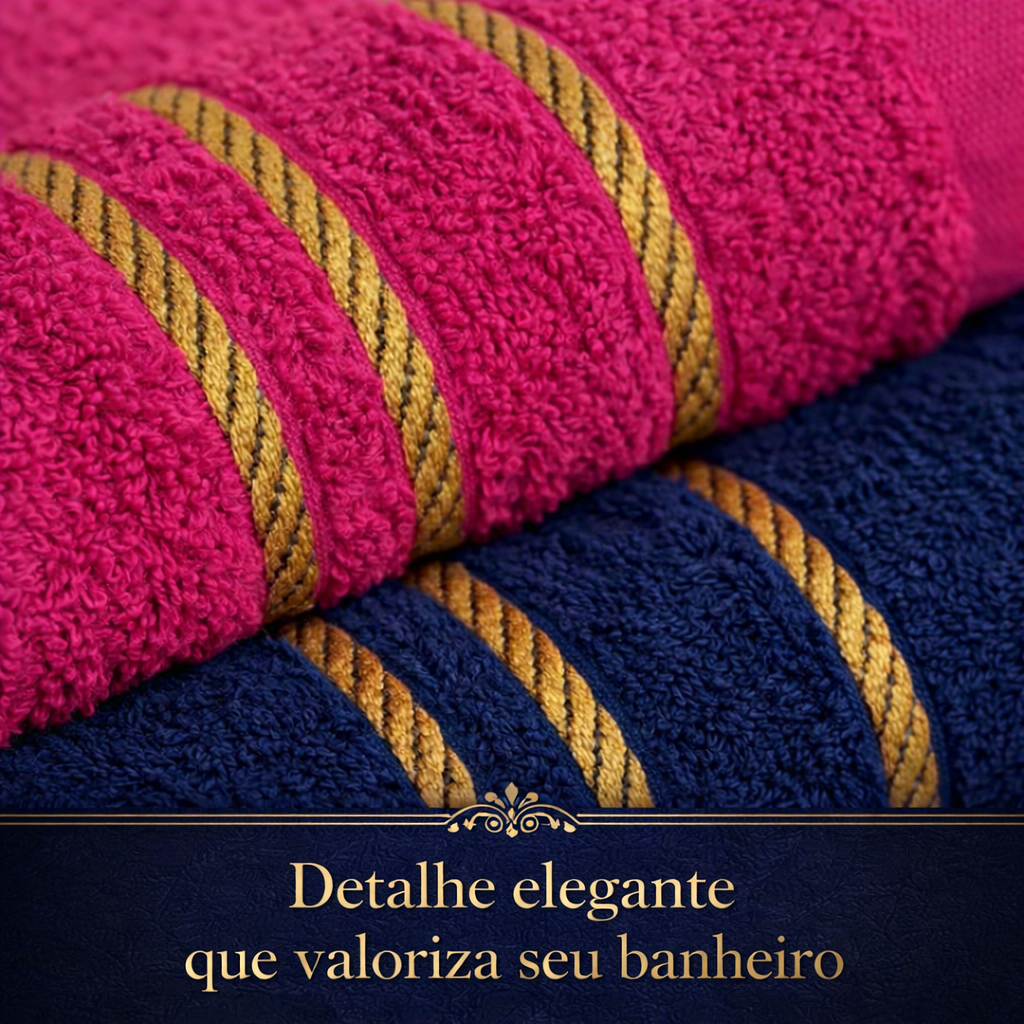 Kit Luxo: 6 Toalhas de Banho/Banhão Efeito Dourado Super Felpudas e Macias 100% Algodão