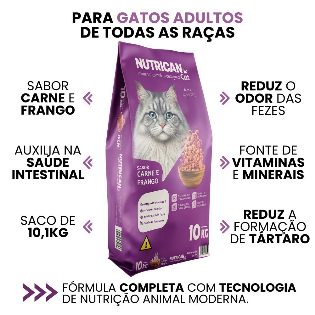 Nutrican Cat Ração Para Gatos Adultos Sabor Carne & Frango 10,1kg