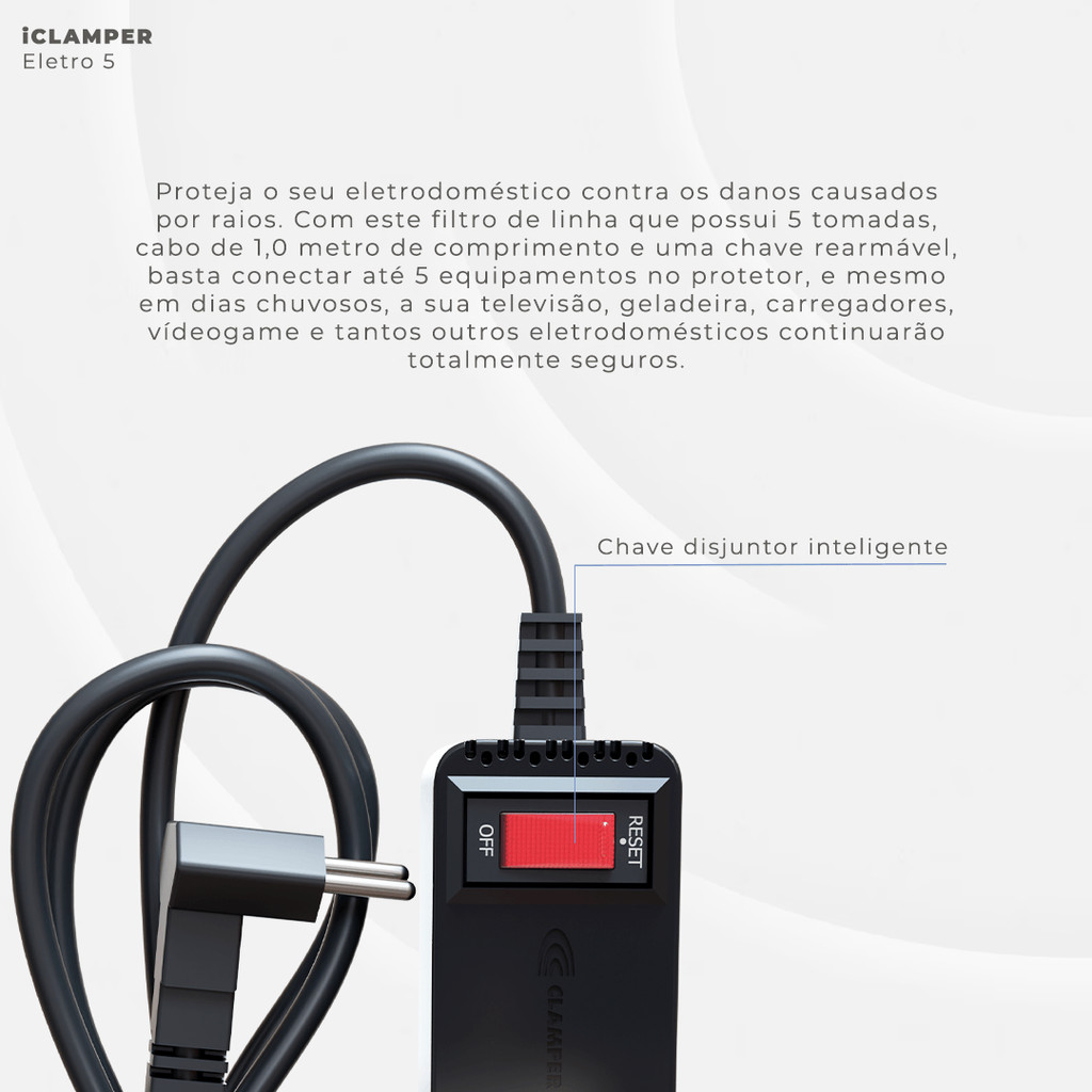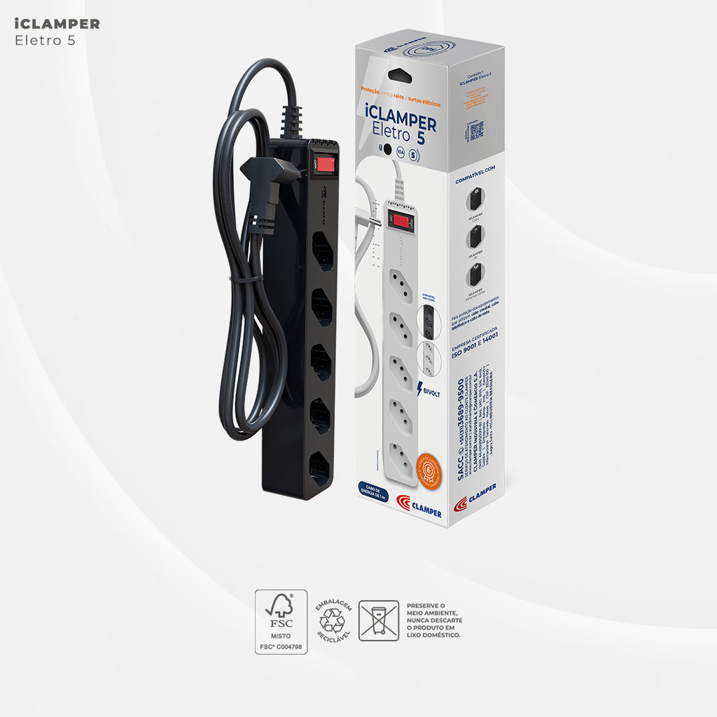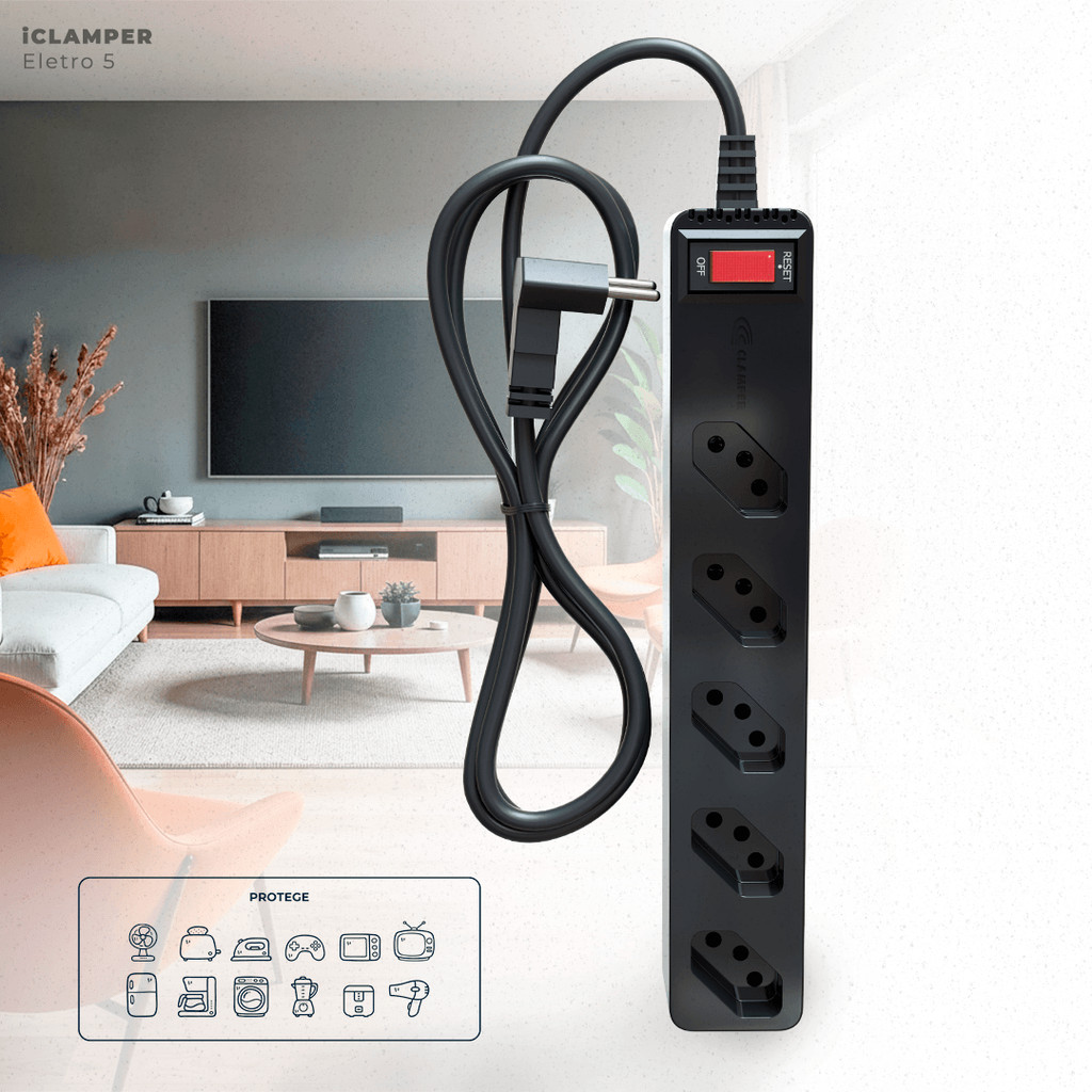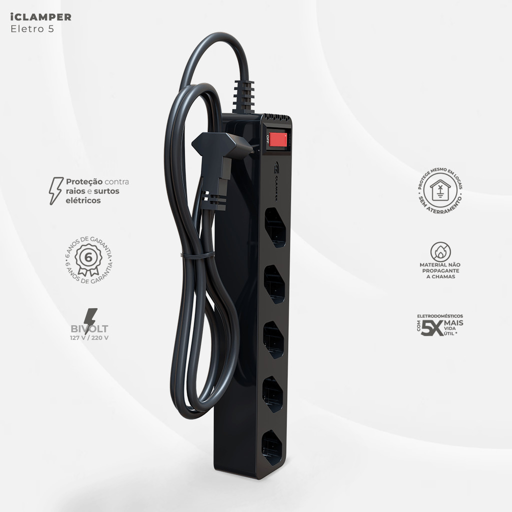 iCLAMPER Eletro 5 Filtro de linha com DPS Bivolt 10A Preto
